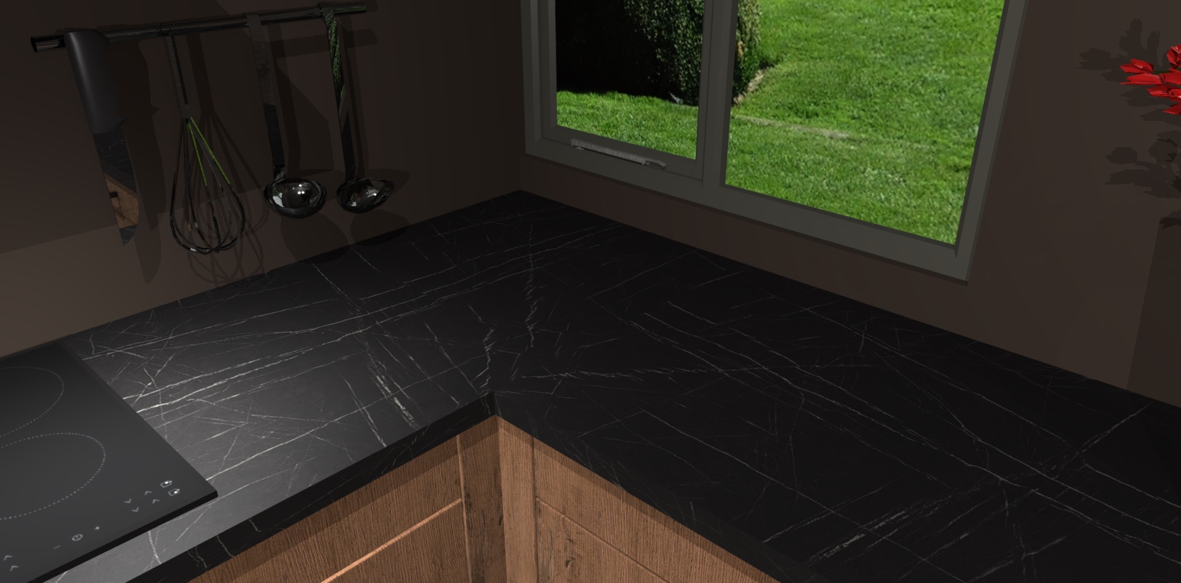 - Bij een hoekwerkblad zijn de hoeken in gevreesd en op maat gemaakt