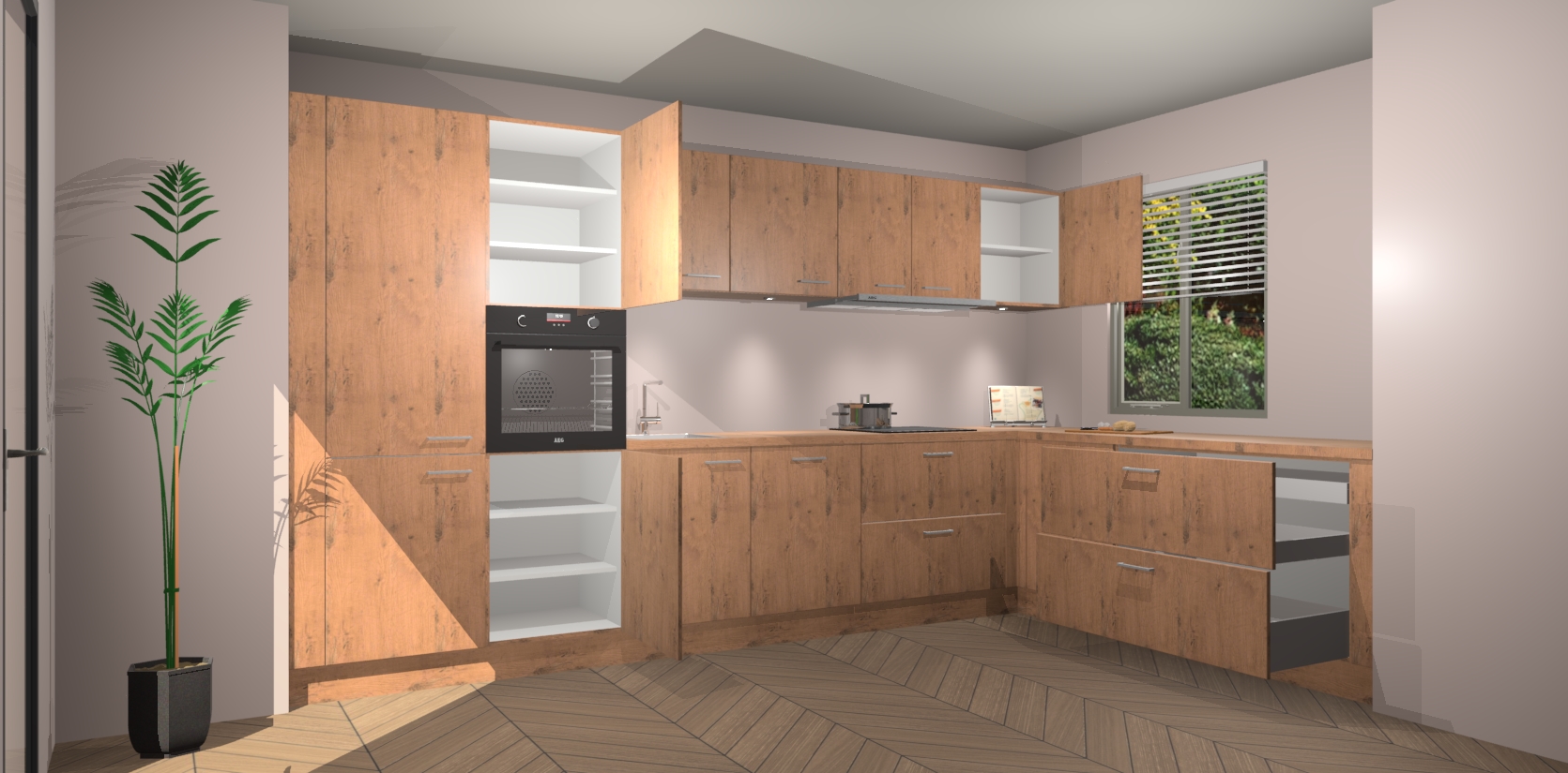 Verwelkom de natuurlijke warmte van de Astoria Eiken keuken Petten in uw huis. Deze prachtige hoekkeuken met zijn moderne design en warme houten look geeft u meer dan genoeg opbergruimte om uw comfortabel te voelen in uw keuken. Geniet van soft-close deuren die al uw gasten het gevoel zullen geven dat ze zich in een luxueuze ruimte bevinden.