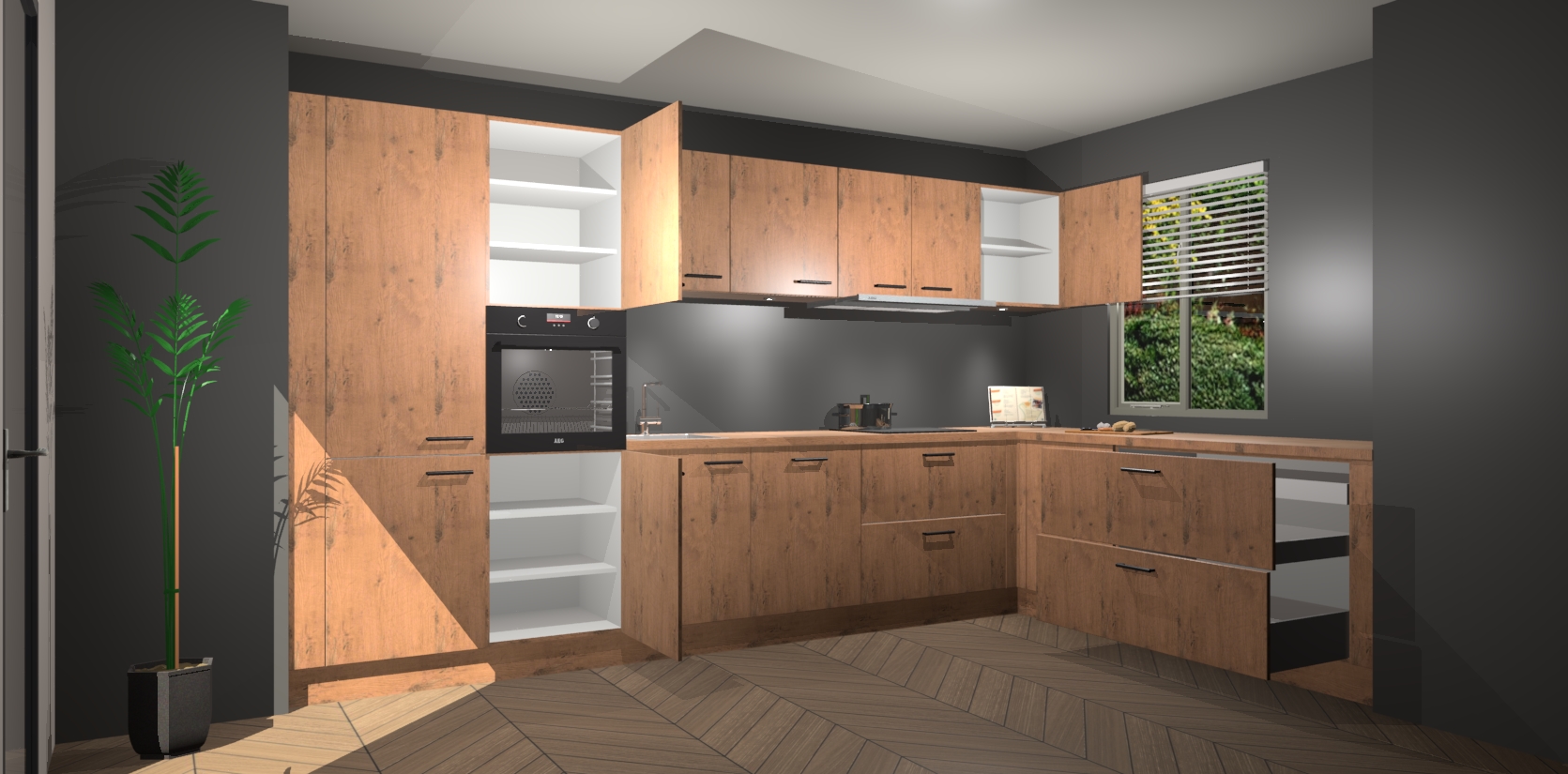 Verwelkom de natuurlijke warmte van de Astoria Eiken keuken Petten in uw huis. Deze prachtige hoekkeuken met zijn moderne design en warme houten look geeft u meer dan genoeg opbergruimte om uw comfortabel te voelen in uw keuken. Geniet van soft-close deuren die al uw gasten het gevoel zullen geven dat ze zich in een luxueuze ruimte bevinden.