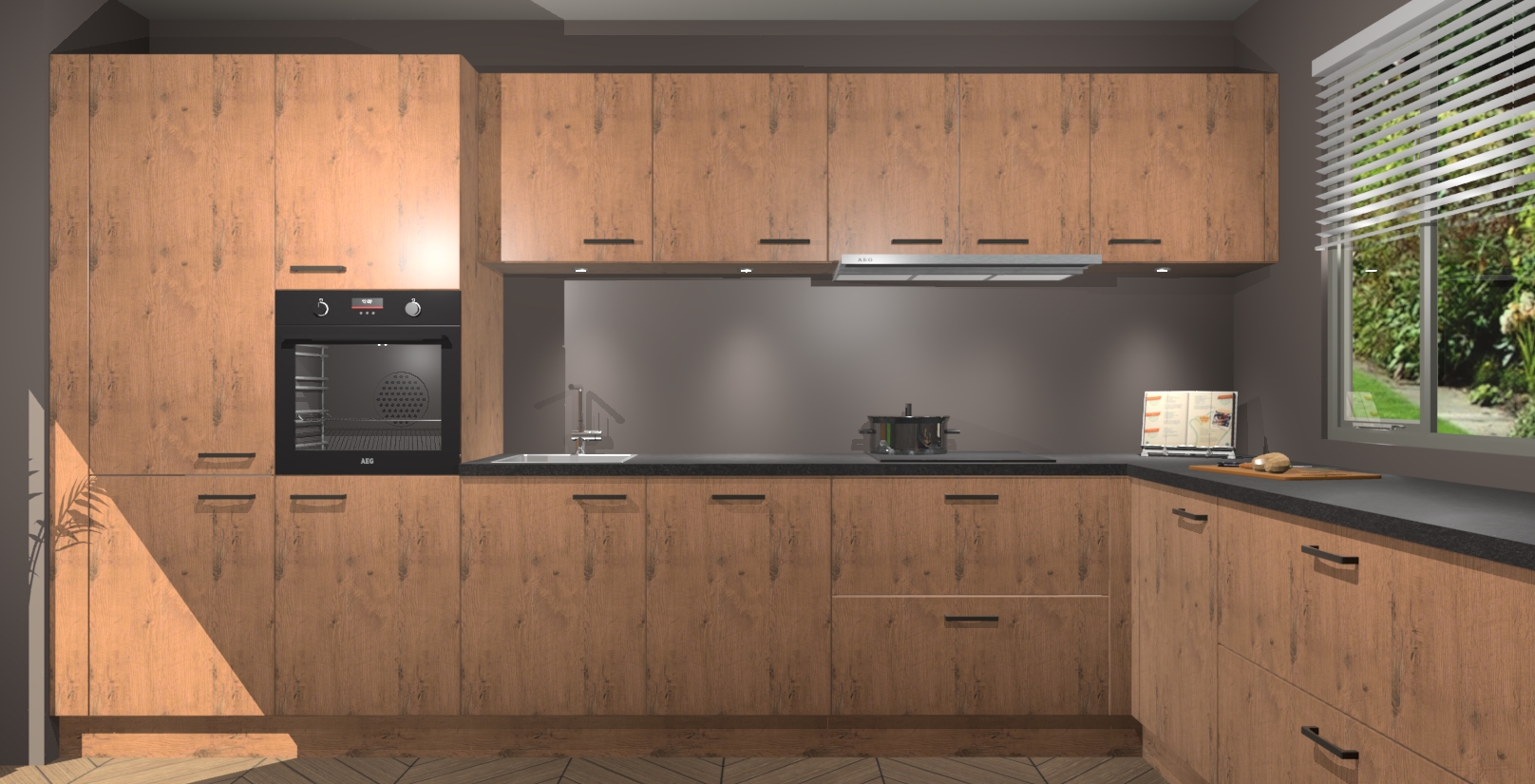 Uw droom van een sprookje binnenshuis is nu binnen handbereik met 5 inbouwapparaten in dit complete pakket: een oven, inductiekookplaat, afzuigkap, vaatwasser en koelkast! Haal deze geraffineerde en warme sfeer nu sneller in huis dan normaal - wij garanderen een snelle levering binnen 7 weken.