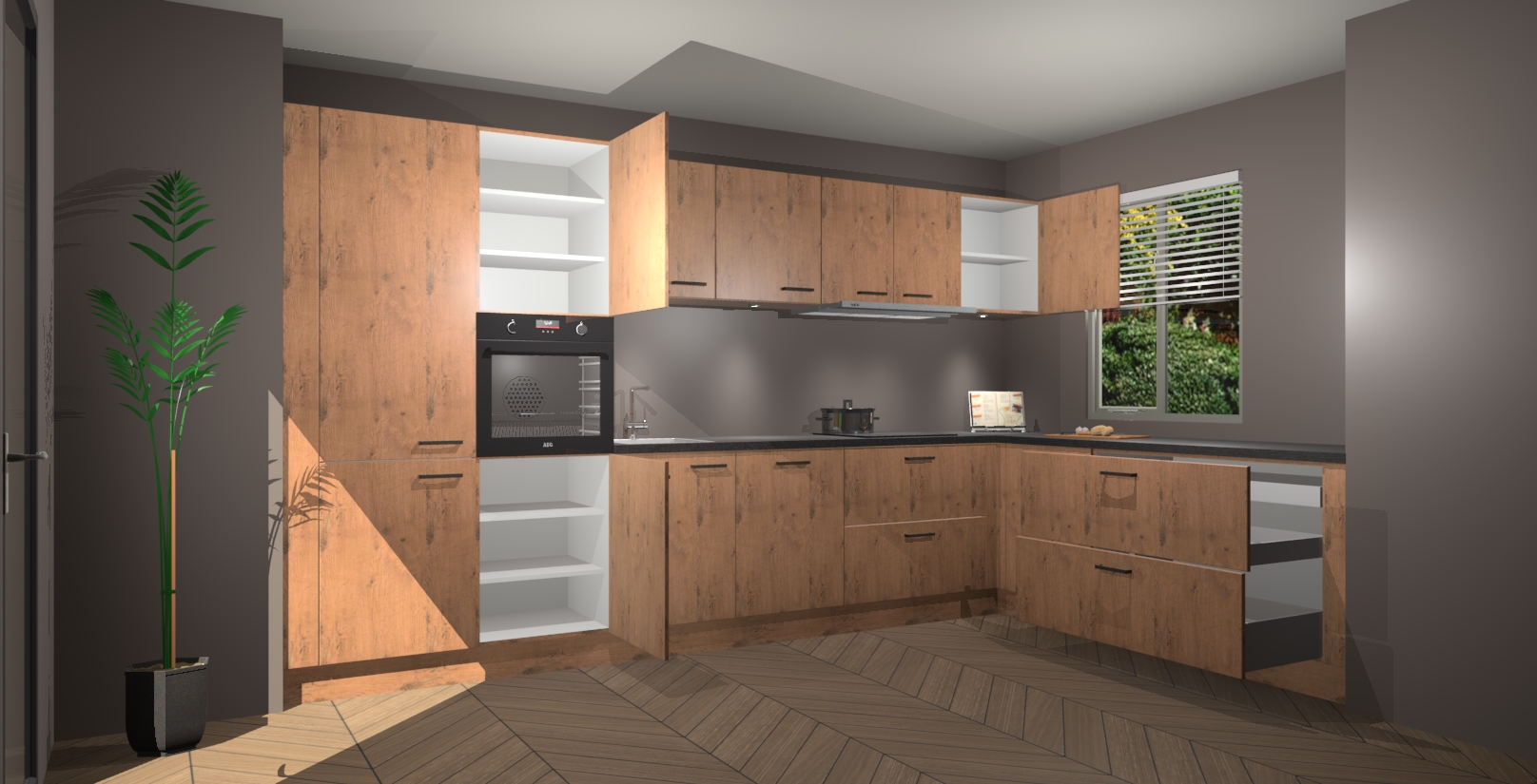 Verwelkom de natuurlijke warmte van de Astoria Eiken keuken Petten in uw huis. Deze prachtige hoekkeuken met zijn moderne design en warme houten look geeft u meer dan genoeg opbergruimte om uw comfortabel te voelen in uw keuken. Geniet van soft-close deuren die al uw gasten het gevoel zullen geven dat ze zich in een luxueuze ruimte bevinden.