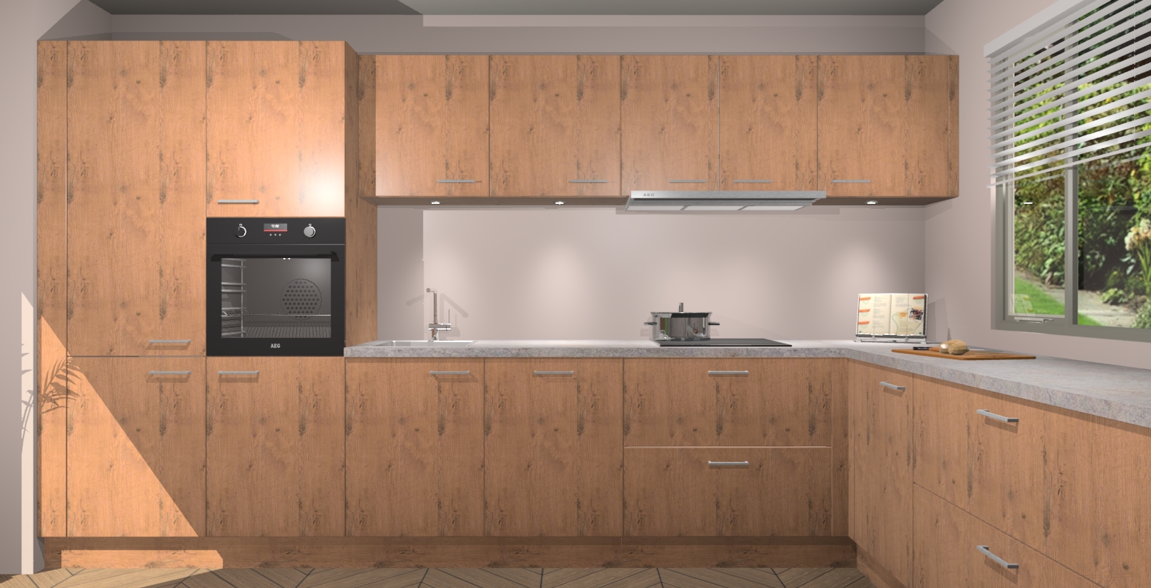 Uw droom van een sprookje binnenshuis is nu binnen handbereik met 5 inbouwapparaten in dit complete pakket: een oven, inductiekookplaat, afzuigkap, vaatwasser en koelkast! Haal deze geraffineerde en warme sfeer nu sneller in huis dan normaal - wij garanderen een snelle levering binnen 7 weken.