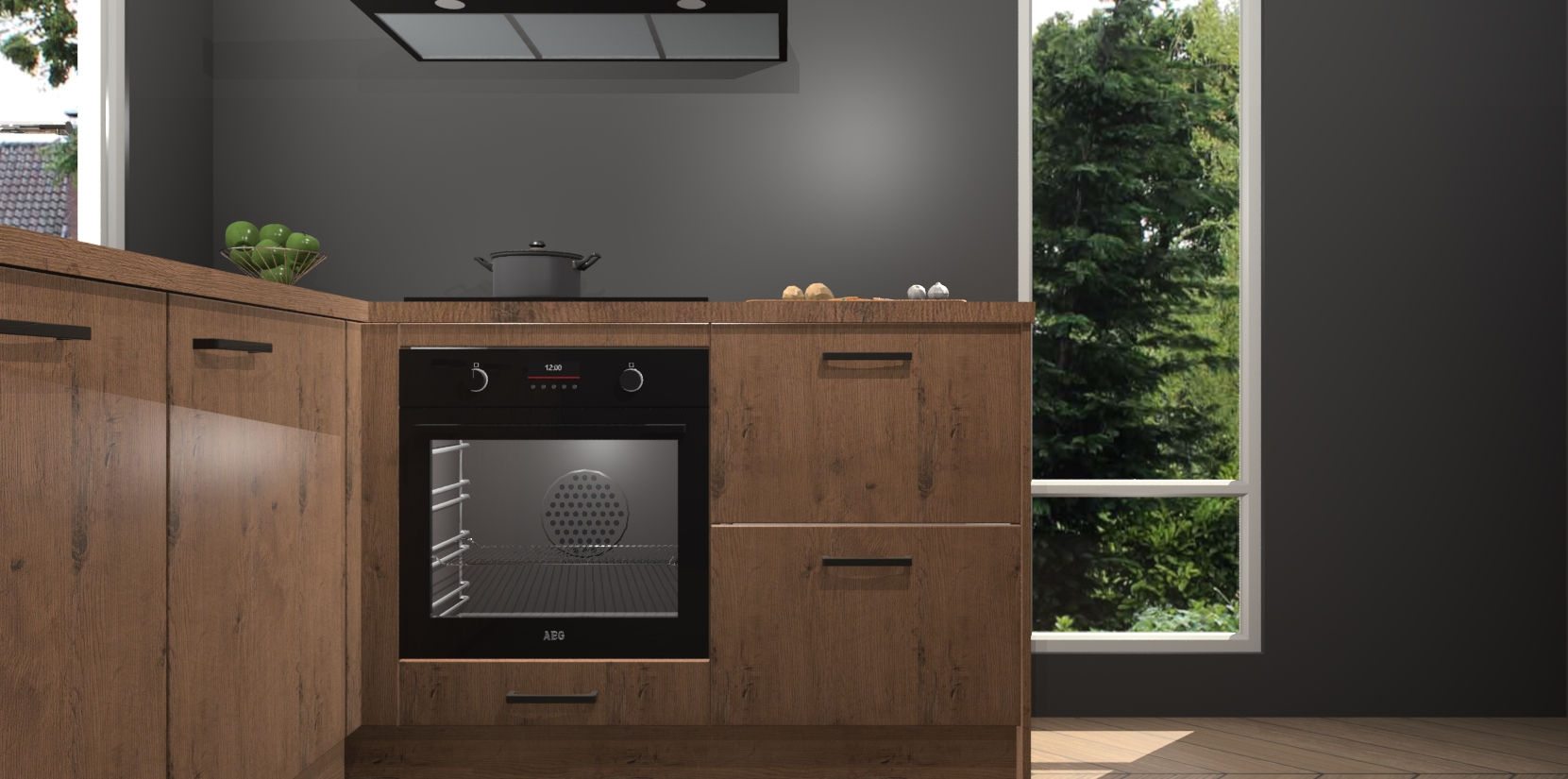 De Astoria Eiken keuken Phuket heeft alles wat u maar kunt wensen. Niet alleen zijn er softclose deuren, maar ook 5 ingebouwde apparaten: een oven, inductiekookplaat, afzuigkap, vaatwasser en koelkast - waarbij u later gemakkelijk naar het AEG merk, van inductiekookplaat naar kookplaat met geïntegreerde afzuiging of van oven naar combimagnetron kunt upgraden. Dat alles tegen een vast laag tarief! Bovendien geeft de Astoria Eiken keuken Phuket supersnelle levering van 7 weken. Echt iets voor u als u er niet op wilt wachten om het resultaat te zien in eigen keuken!