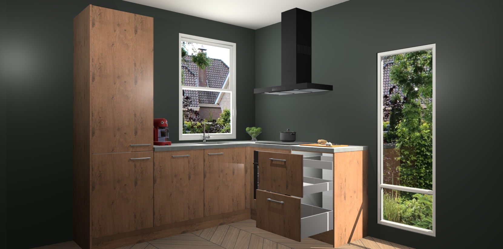 De prachtige Astoria Eiken keuken Phuket is de perfecte keuze als u op zoek bent naar een moderne hoekkeuken met alle luxe en comfort die u kunt verwachten! De uitstraling in het houtlook-design draagt bij aan de warme sfeer die u nu al voelt wanneer u er naar kijkt. Heeft u genoeg van ouderwetse keukens? Probeer dan direct deze moderne, mooie hoekkeukens en laat iedereen verbluft achter!