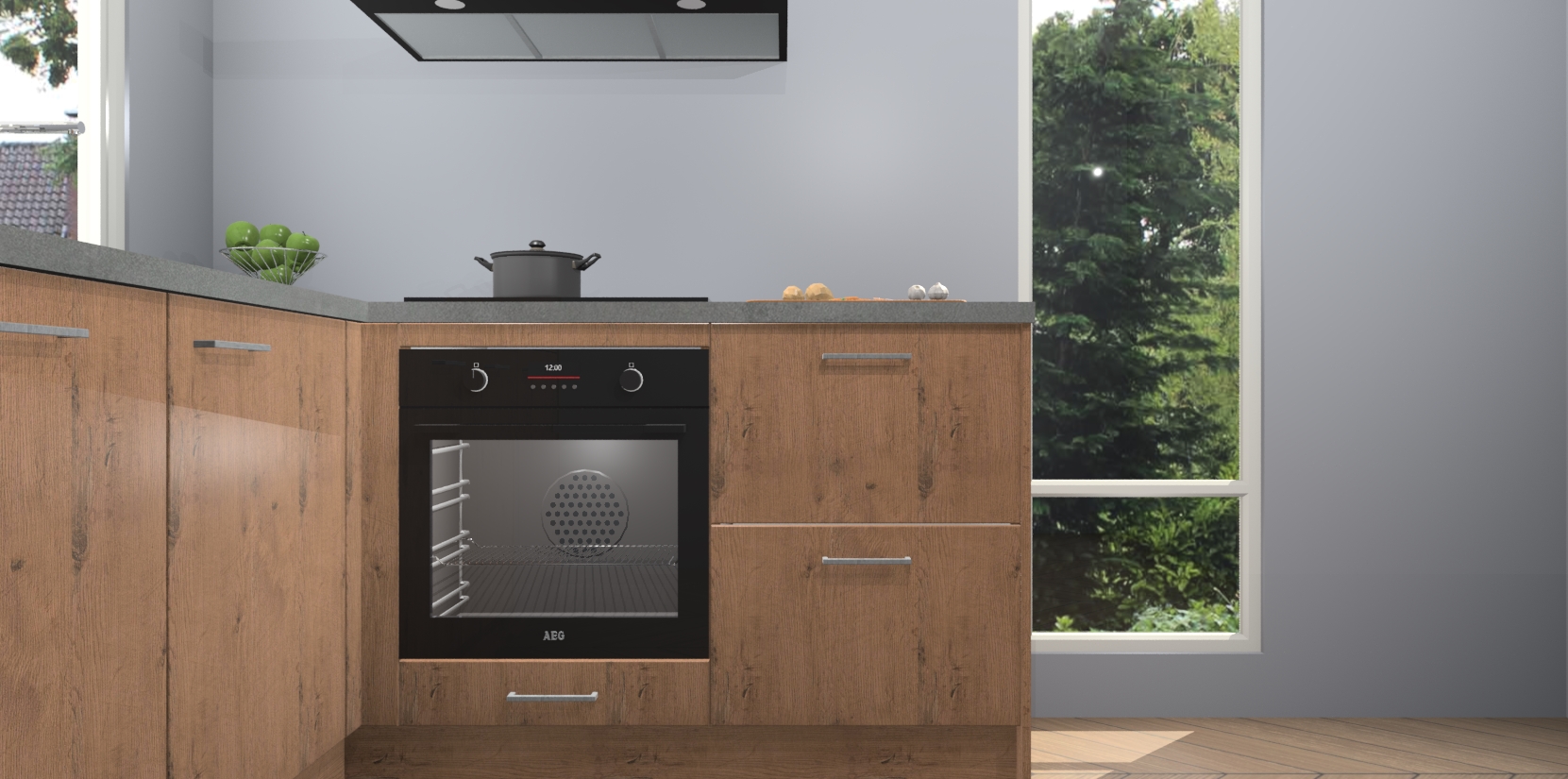 De Astoria Eiken keuken Phuket heeft alles wat u maar kunt wensen. Niet alleen zijn er softclose deuren, maar ook 5 ingebouwde apparaten: een oven, inductiekookplaat, afzuigkap, vaatwasser en koelkast - waarbij u later gemakkelijk naar het AEG merk, van inductiekookplaat naar kookplaat met geïntegreerde afzuiging of van oven naar combimagnetron kunt upgraden. Dat alles tegen een vast laag tarief! Bovendien geeft de Astoria Eiken keuken Phuket supersnelle levering van 7 weken. Echt iets voor u als u er niet op wilt wachten om het resultaat te zien in eigen keuken!