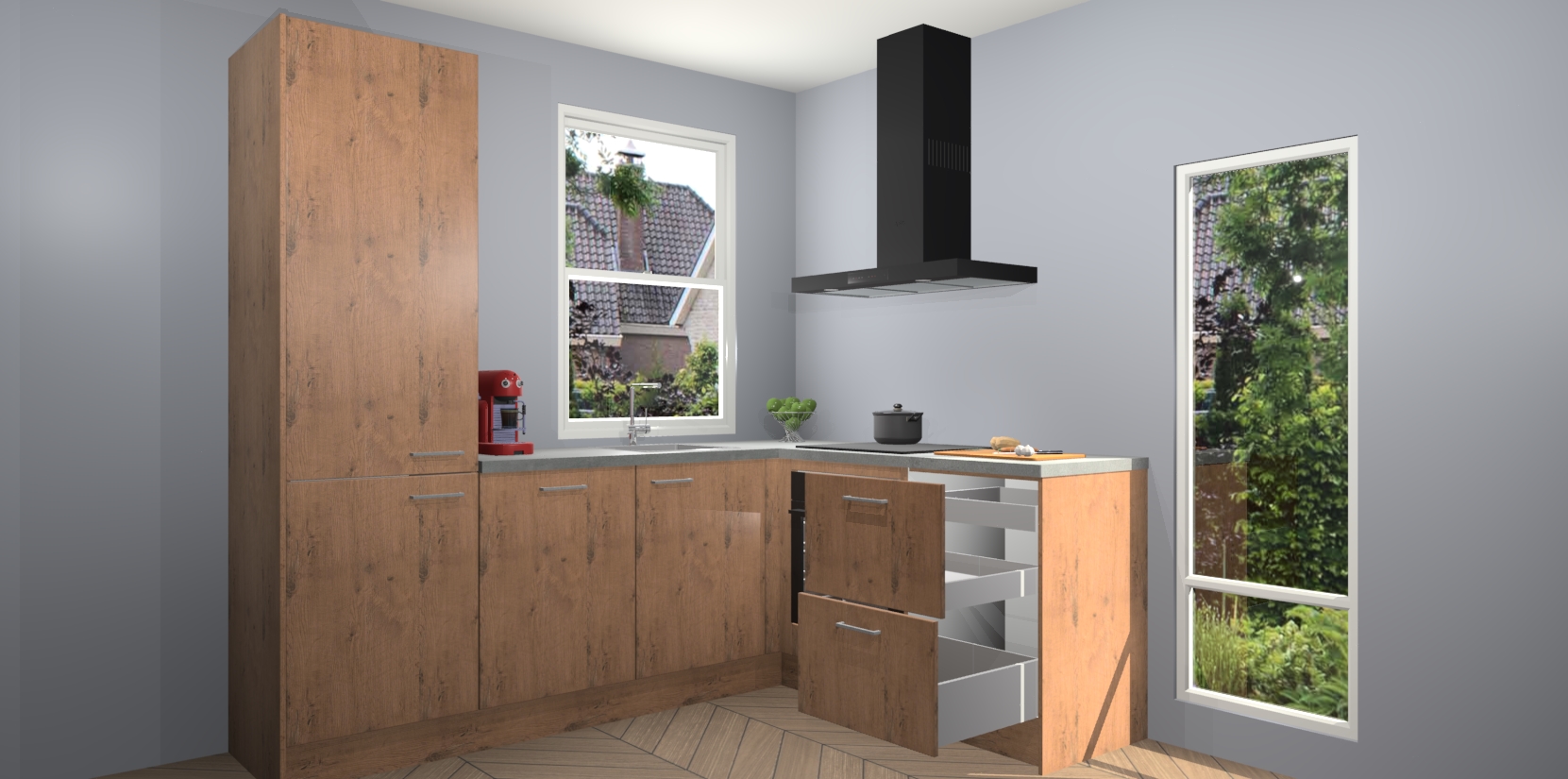 De prachtige Astoria Eiken keuken Phuket is de perfecte keuze als u op zoek bent naar een moderne hoekkeuken met alle luxe en comfort die u kunt verwachten! De uitstraling in het houtlook-design draagt bij aan de warme sfeer die u nu al voelt wanneer u er naar kijkt. Heeft u genoeg van ouderwetse keukens? Probeer dan direct deze moderne, mooie hoekkeukens en laat iedereen verbluft achter!