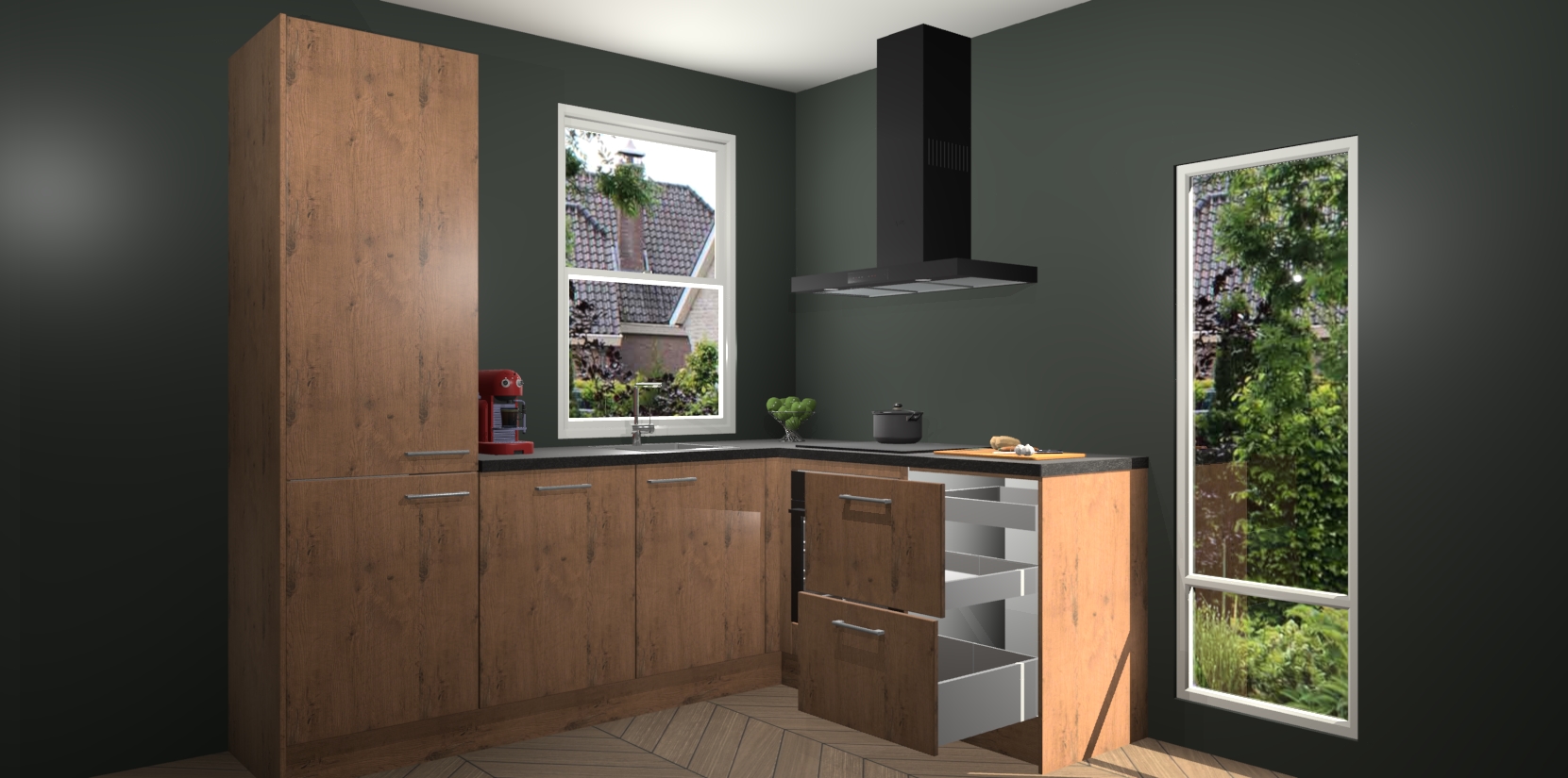 De prachtige Astoria Eiken keuken Phuket is de perfecte keuze als u op zoek bent naar een moderne hoekkeuken met alle luxe en comfort die u kunt verwachten! De uitstraling in het houtlook-design draagt bij aan de warme sfeer die u nu al voelt wanneer u er naar kijkt. Heeft u genoeg van ouderwetse keukens? Probeer dan direct deze moderne, mooie hoekkeukens en laat iedereen verbluft achter!