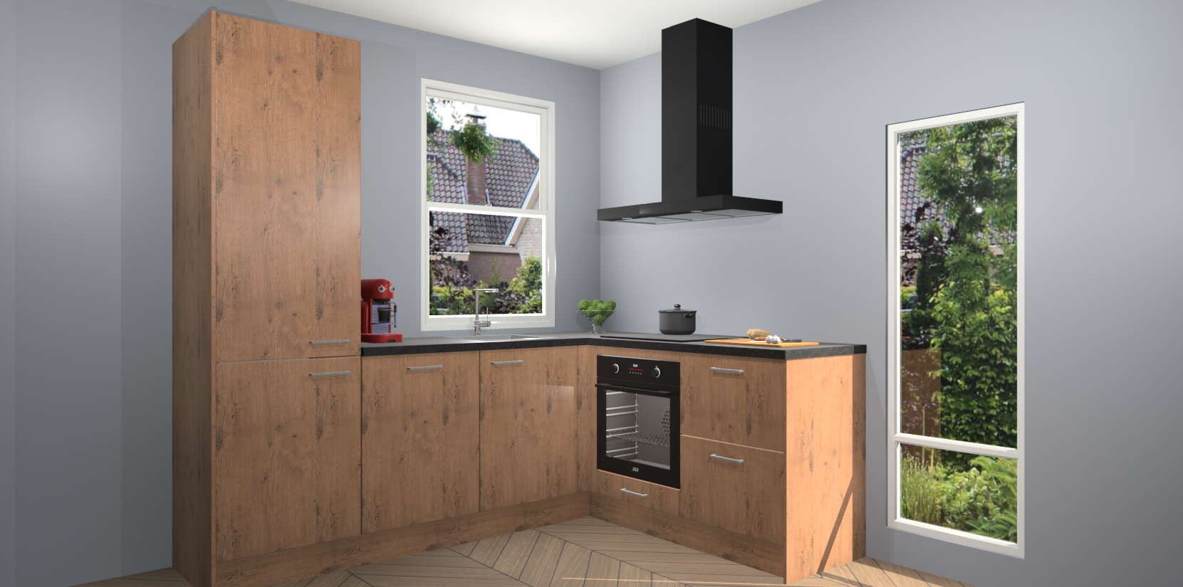 De prachtige Astoria Eiken keuken Phuket is de perfecte keuze als u op zoek bent naar een moderne hoekkeuken met alle luxe en comfort die u kunt verwachten! De uitstraling in het houtlook-design draagt bij aan de warme sfeer die u nu al voelt wanneer u er naar kijkt. Heeft u genoeg van ouderwetse keukens? Probeer dan direct deze moderne, mooie hoekkeukens en laat iedereen verbluft achter!