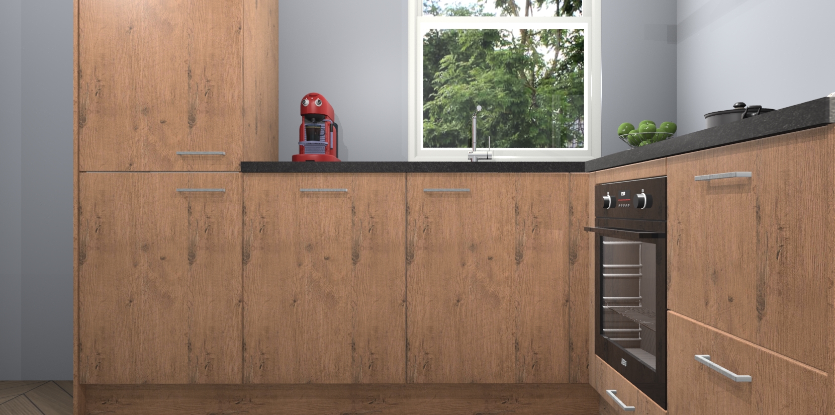 De Astoria Eiken keuken Phuket heeft alles wat u maar kunt wensen. Niet alleen zijn er softclose deuren, maar ook 5 ingebouwde apparaten: een oven, inductiekookplaat, afzuigkap, vaatwasser en koelkast - waarbij u later gemakkelijk naar het AEG merk, van inductiekookplaat naar kookplaat met geïntegreerde afzuiging of van oven naar combimagnetron kunt upgraden. Dat alles tegen een vast laag tarief! Bovendien geeft de Astoria Eiken keuken Phuket supersnelle levering van 7 weken. Echt iets voor u als u er niet op wilt wachten om het resultaat te zien in eigen keuken!