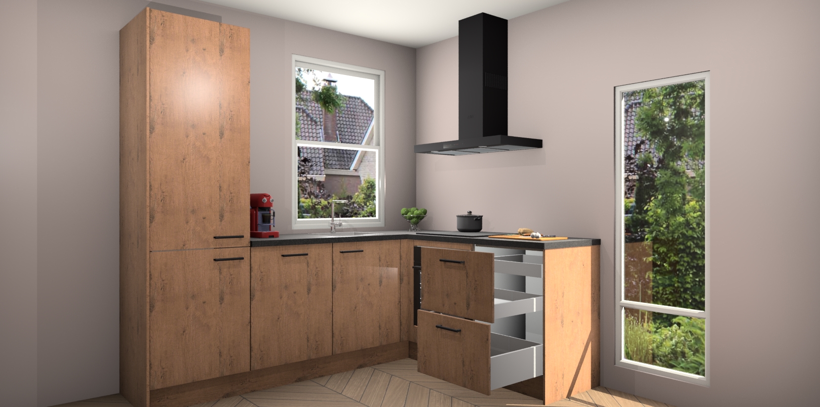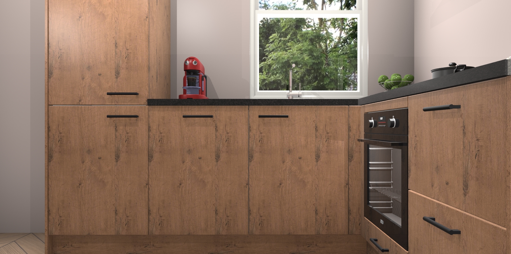 De prachtige Astoria Eiken keuken Phuket is de perfecte keuze als u op zoek bent naar een moderne hoekkeuken met alle luxe en comfort die u kunt verwachten! De uitstraling in het houtlook-design draagt bij aan de warme sfeer die u nu al voelt wanneer u er naar kijkt. Heeft u genoeg van ouderwetse keukens? Probeer dan direct deze moderne, mooie hoekkeukens en laat iedereen verbluft achter!