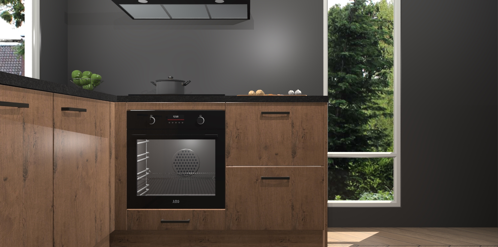 De Astoria Eiken keuken Phuket heeft alles wat u maar kunt wensen. Niet alleen zijn er softclose deuren, maar ook 5 ingebouwde apparaten: een oven, inductiekookplaat, afzuigkap, vaatwasser en koelkast - waarbij u later gemakkelijk naar het AEG merk, van inductiekookplaat naar kookplaat met geïntegreerde afzuiging of van oven naar combimagnetron kunt upgraden. Dat alles tegen een vast laag tarief! Bovendien geeft de Astoria Eiken keuken Phuket supersnelle levering van 7 weken. Echt iets voor u als u er niet op wilt wachten om het resultaat te zien in eigen keuken!