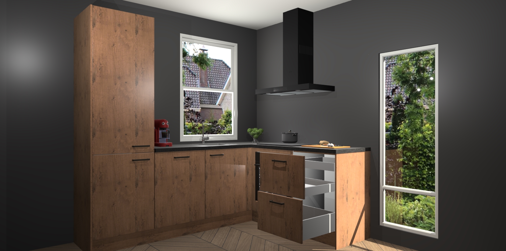 De prachtige Astoria Eiken keuken Phuket is de perfecte keuze als u op zoek bent naar een moderne hoekkeuken met alle luxe en comfort die u kunt verwachten! De uitstraling in het houtlook-design draagt bij aan de warme sfeer die u nu al voelt wanneer u er naar kijkt. Heeft u genoeg van ouderwetse keukens? Probeer dan direct deze moderne, mooie hoekkeukens en laat iedereen verbluft achter!