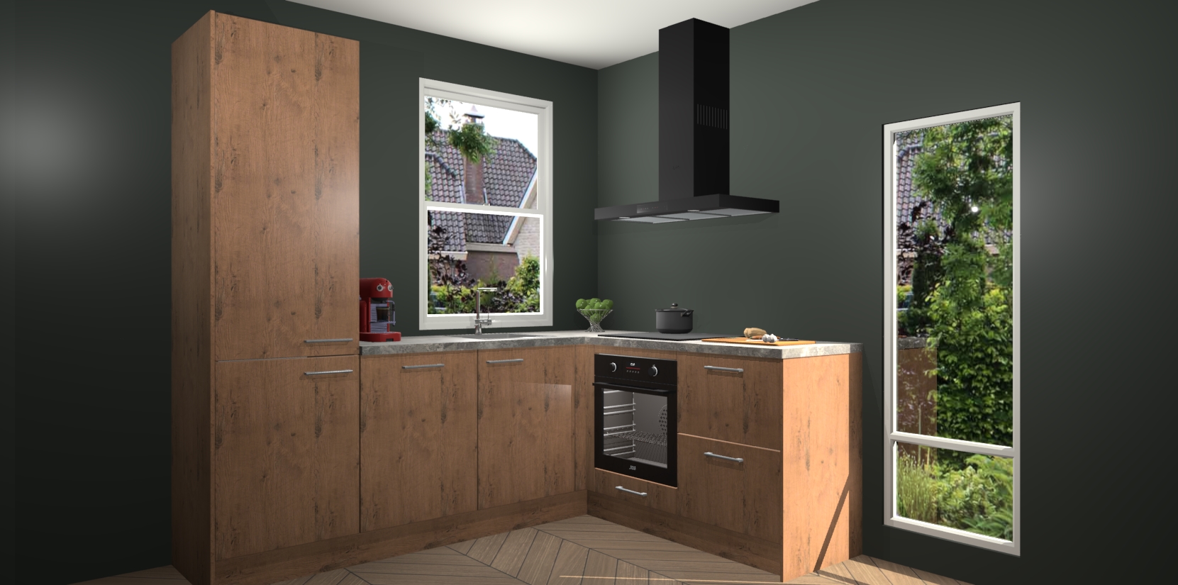 De prachtige Astoria Eiken keuken Phuket is de perfecte keuze als u op zoek bent naar een moderne hoekkeuken met alle luxe en comfort die u kunt verwachten! De uitstraling in het houtlook-design draagt bij aan de warme sfeer die u nu al voelt wanneer u er naar kijkt. Heeft u genoeg van ouderwetse keukens? Probeer dan direct deze moderne, mooie hoekkeukens en laat iedereen verbluft achter!