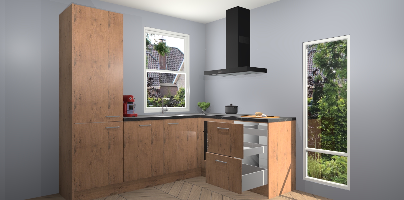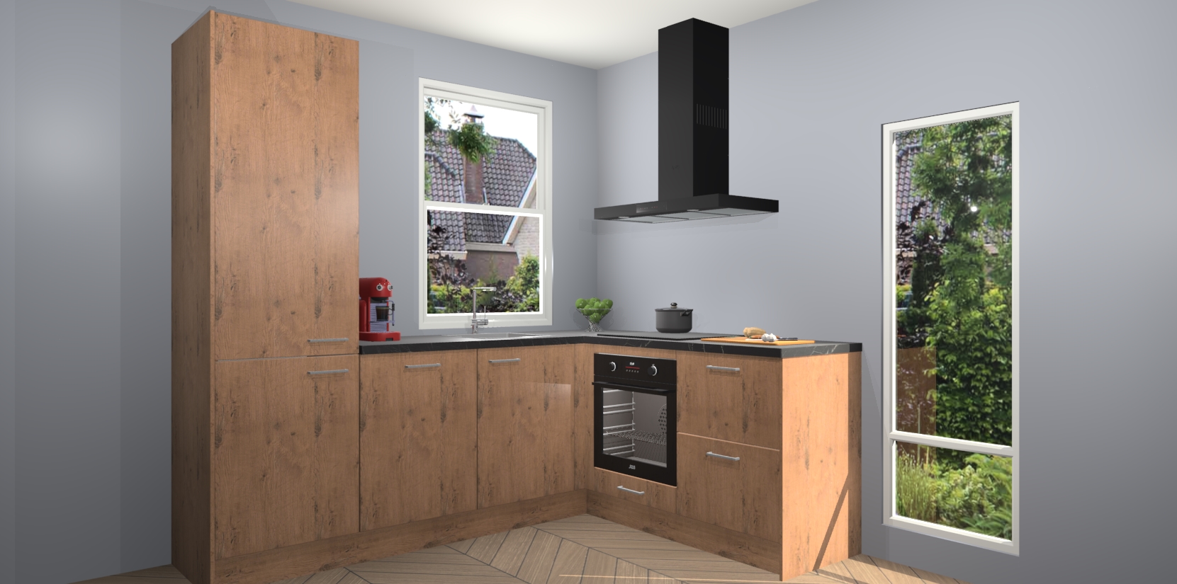 De prachtige Astoria Eiken keuken Phuket is de perfecte keuze als u op zoek bent naar een moderne hoekkeuken met alle luxe en comfort die u kunt verwachten! De uitstraling in het houtlook-design draagt bij aan de warme sfeer die u nu al voelt wanneer u er naar kijkt. Heeft u genoeg van ouderwetse keukens? Probeer dan direct deze moderne, mooie hoekkeukens en laat iedereen verbluft achter!