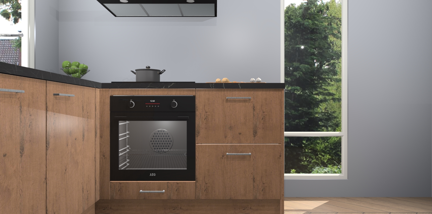 De Astoria Eiken keuken Phuket heeft alles wat u maar kunt wensen. Niet alleen zijn er softclose deuren, maar ook 5 ingebouwde apparaten: een oven, inductiekookplaat, afzuigkap, vaatwasser en koelkast - waarbij u later gemakkelijk naar het AEG merk, van inductiekookplaat naar kookplaat met geïntegreerde afzuiging of van oven naar combimagnetron kunt upgraden. Dat alles tegen een vast laag tarief! Bovendien geeft de Astoria Eiken keuken Phuket supersnelle levering van 7 weken. Echt iets voor u als u er niet op wilt wachten om het resultaat te zien in eigen keuken!