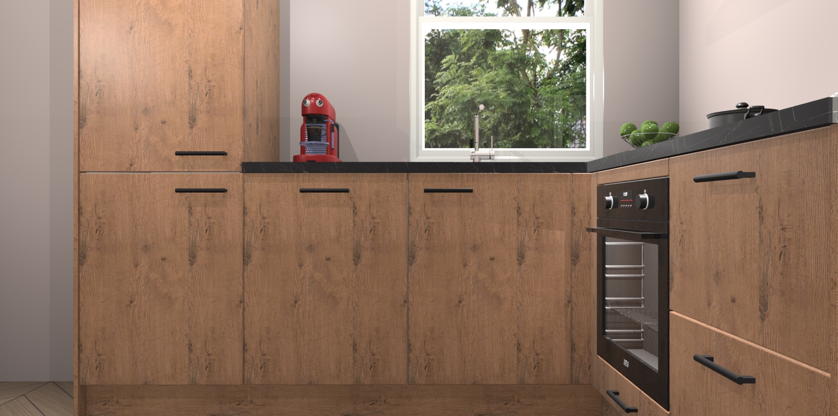 De prachtige Astoria Eiken keuken Phuket is de perfecte keuze als u op zoek bent naar een moderne hoekkeuken met alle luxe en comfort die u kunt verwachten! De uitstraling in het houtlook-design draagt bij aan de warme sfeer die u nu al voelt wanneer u er naar kijkt. Heeft u genoeg van ouderwetse keukens? Probeer dan direct deze moderne, mooie hoekkeukens en laat iedereen verbluft achter!
