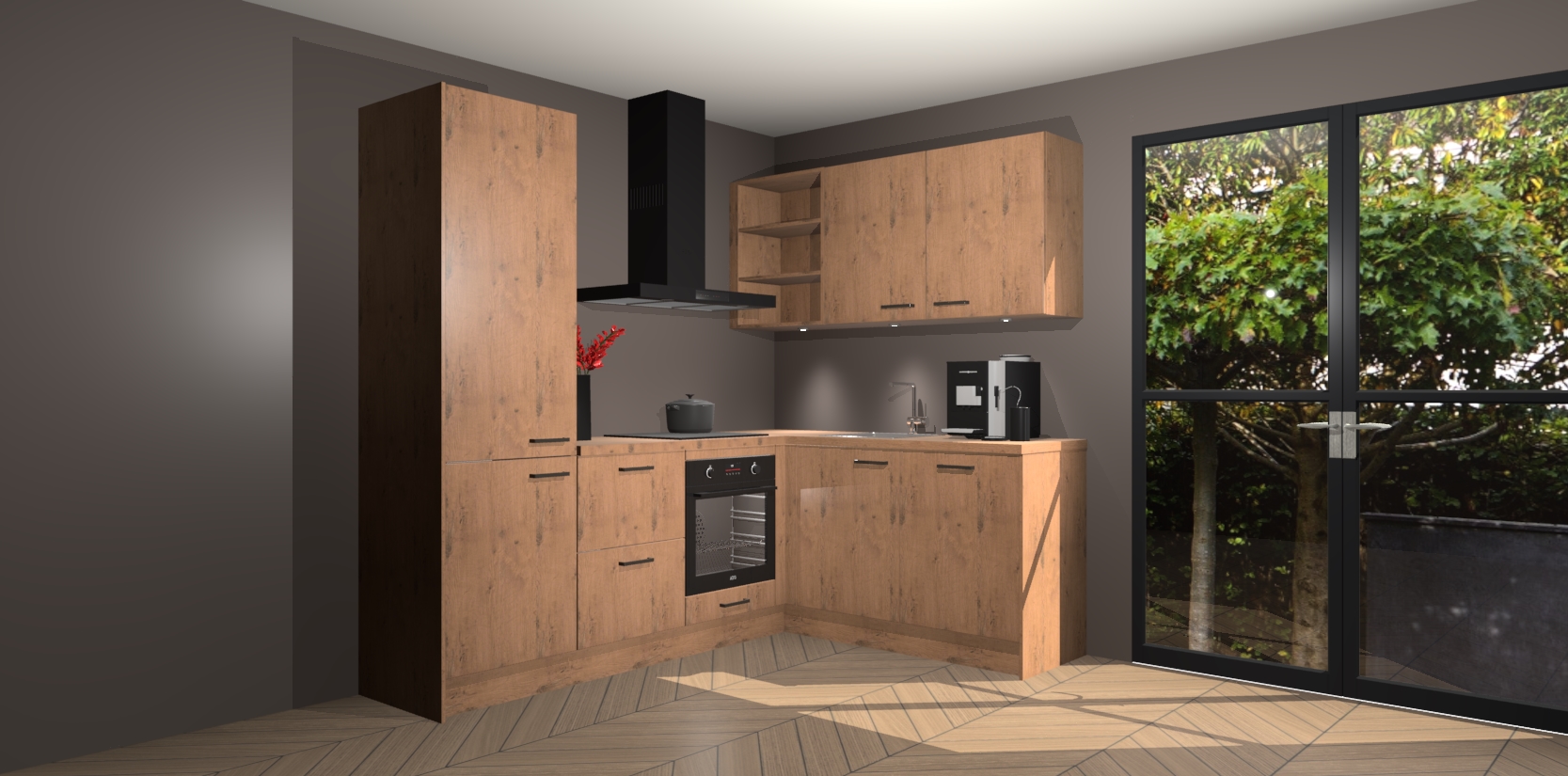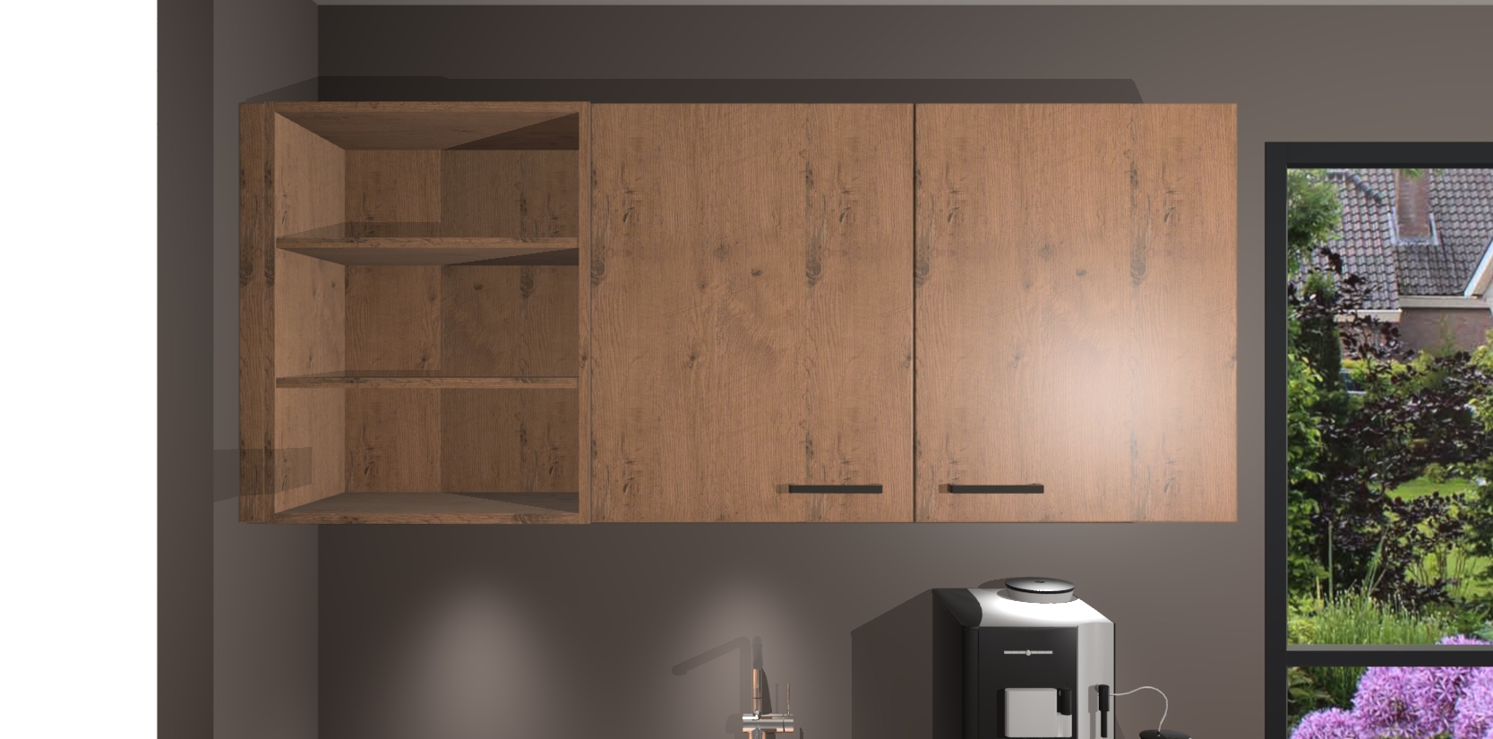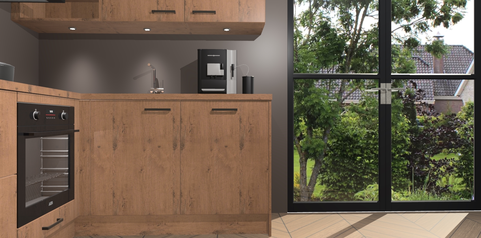 Wauw, dit is de Astoria Eiken keuken Pilsen! U kunt gerust zeggen dat u elegantie combineert met functionaliteit met deze keuken. Met een modern en chique ontwerp is de keuken precies wat u nodig heeft om uw ruimte te verfraaien. De binnenzijde van de kasten is in dezelfde donkere kleur als de buitenzijde voor een uniforme look, compleet met softclose-kasten die stil sluiten.
