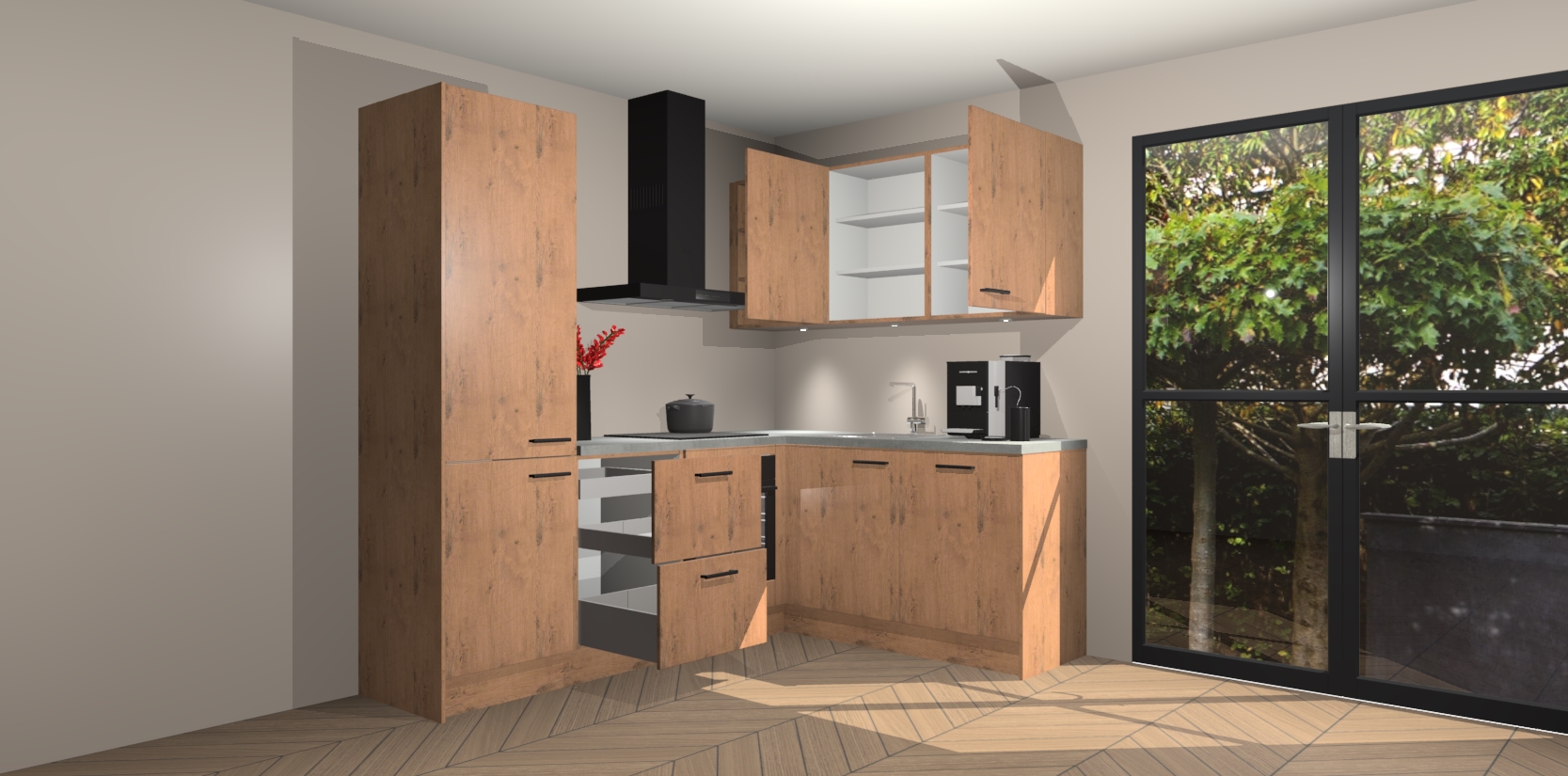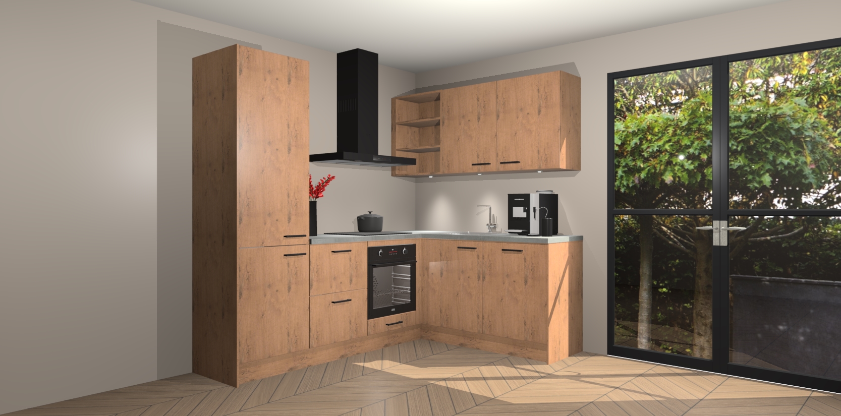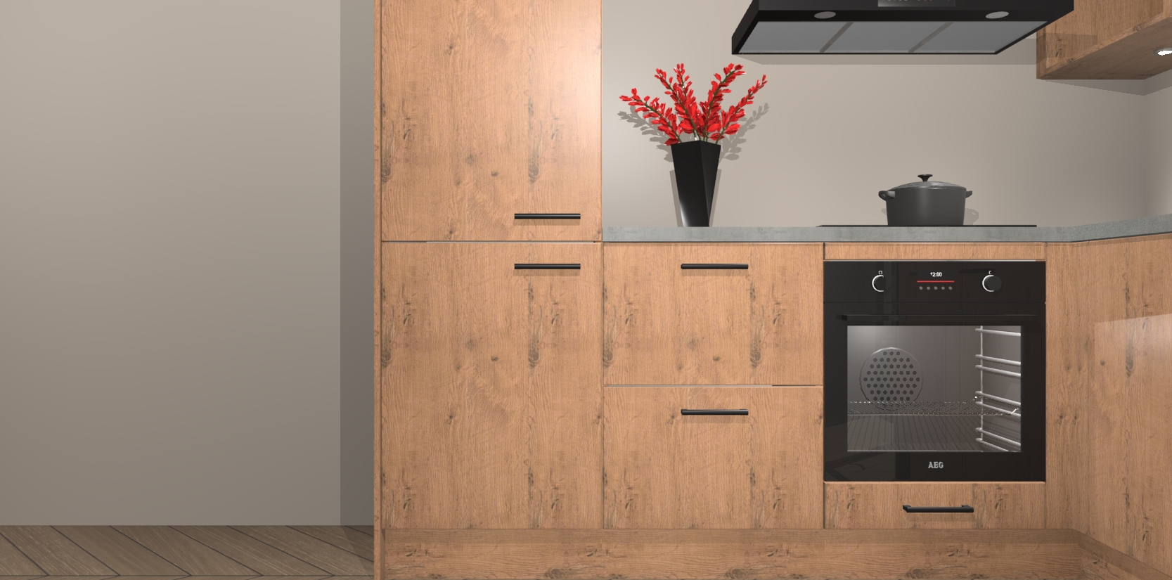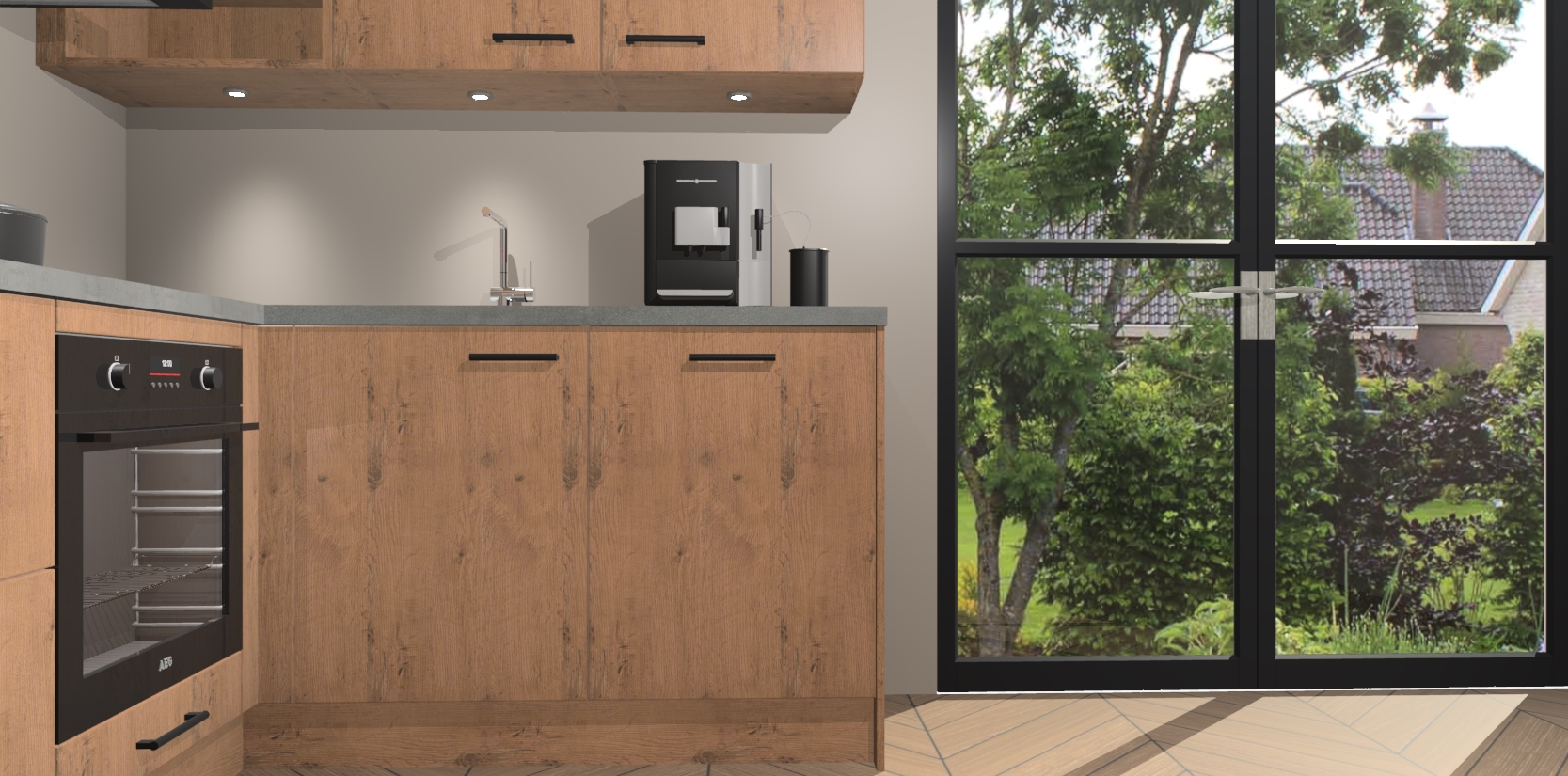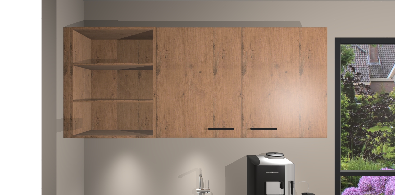 Wauw, dit is de Astoria Eiken keuken Pilsen! U kunt gerust zeggen dat u elegantie combineert met functionaliteit met deze keuken. Met een modern en chique ontwerp is de keuken precies wat u nodig heeft om uw ruimte te verfraaien. De binnenzijde van de kasten is in dezelfde donkere kleur als de buitenzijde voor een uniforme look, compleet met softclose-kasten die stil sluiten.