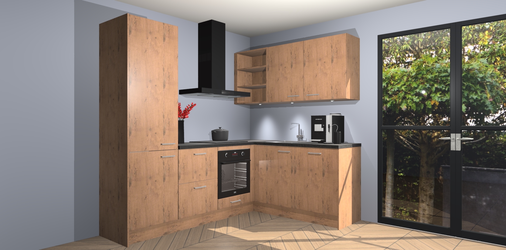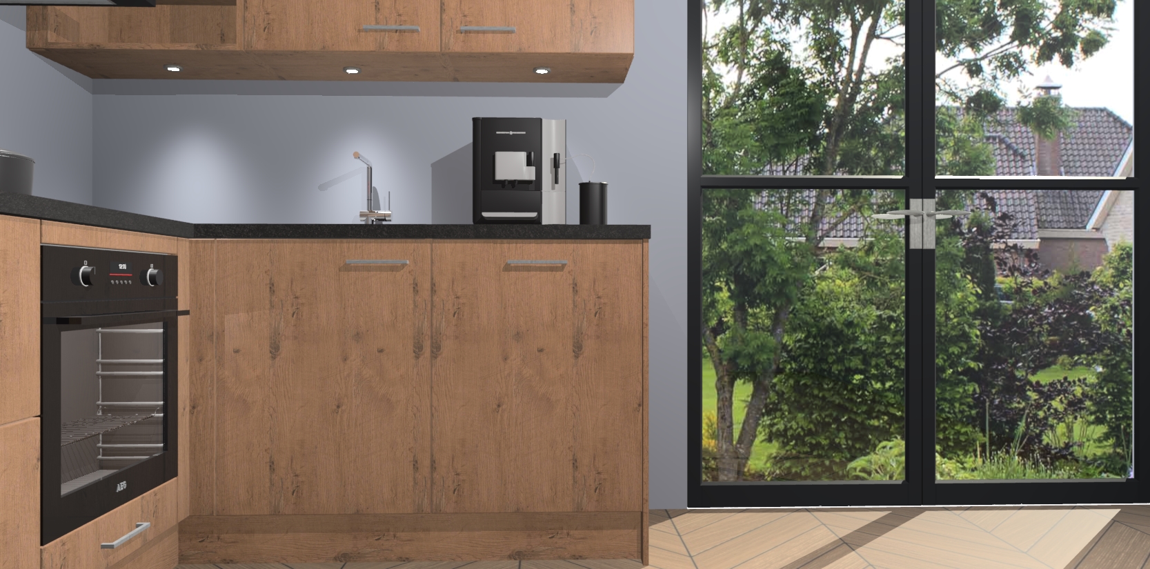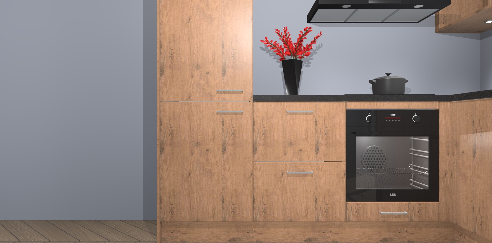 Wauw, dit is de Astoria Eiken keuken Pilsen! U kunt gerust zeggen dat u elegantie combineert met functionaliteit met deze keuken. Met een modern en chique ontwerp is de keuken precies wat u nodig heeft om uw ruimte te verfraaien. De binnenzijde van de kasten is in dezelfde donkere kleur als de buitenzijde voor een uniforme look, compleet met softclose-kasten die stil sluiten.