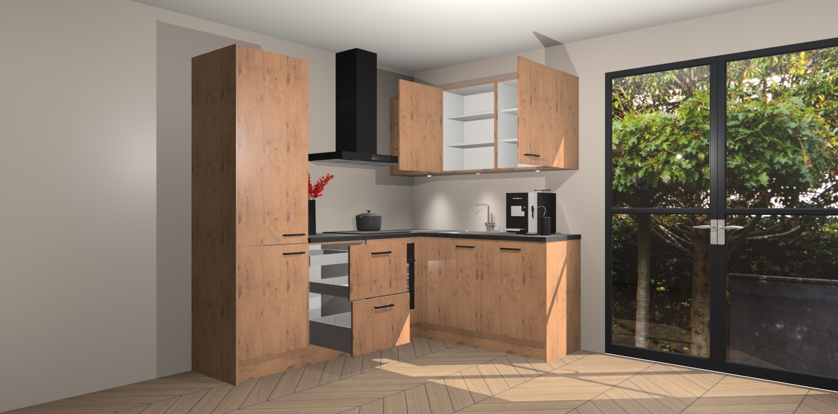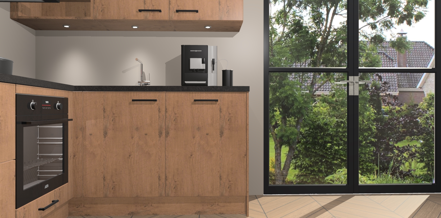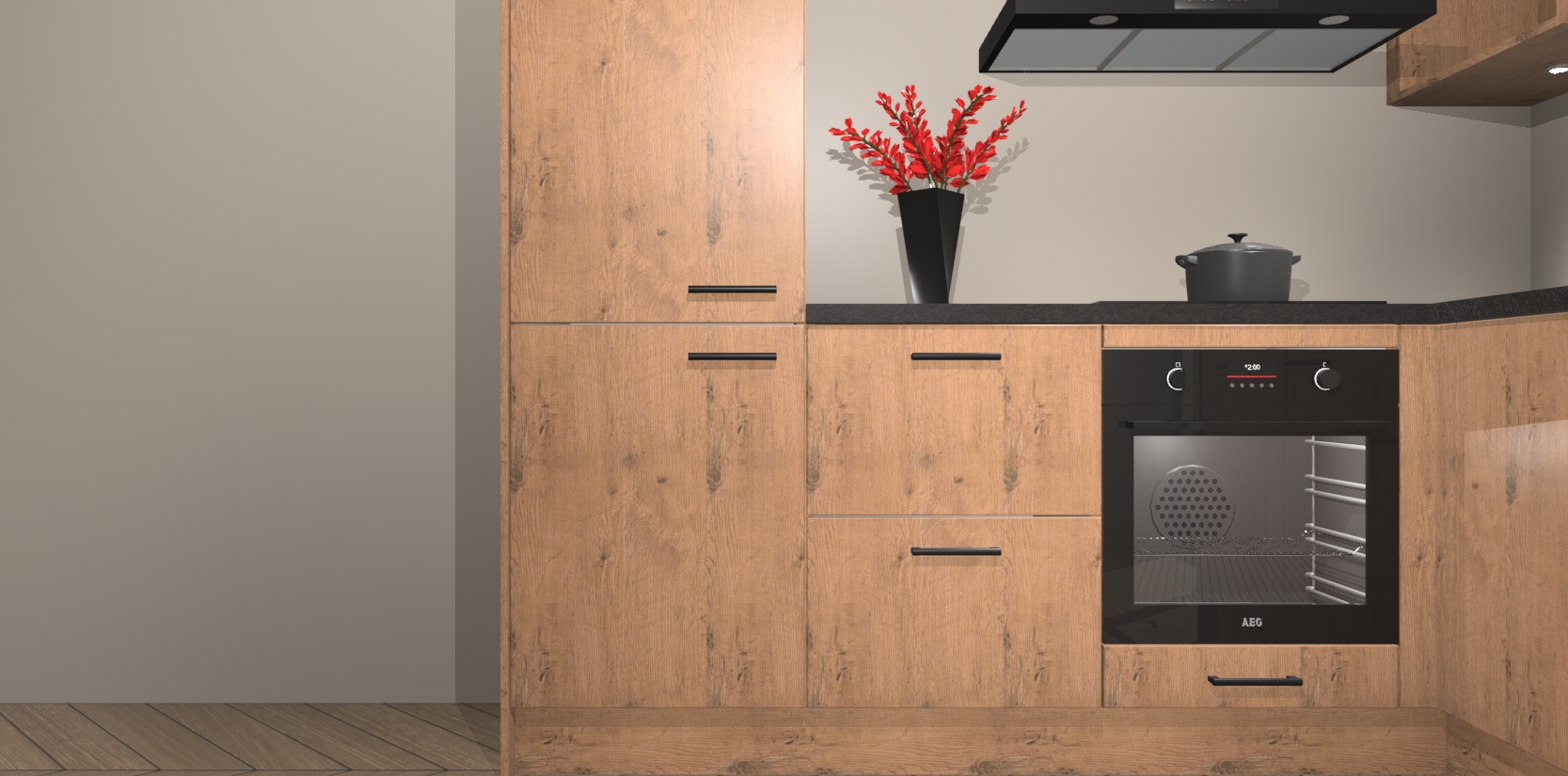 Wauw, dit is de Astoria Eiken keuken Pilsen! U kunt gerust zeggen dat u elegantie combineert met functionaliteit met deze keuken. Met een modern en chique ontwerp is de keuken precies wat u nodig heeft om uw ruimte te verfraaien. De binnenzijde van de kasten is in dezelfde donkere kleur als de buitenzijde voor een uniforme look, compleet met softclose-kasten die stil sluiten.
