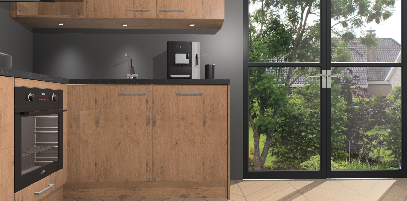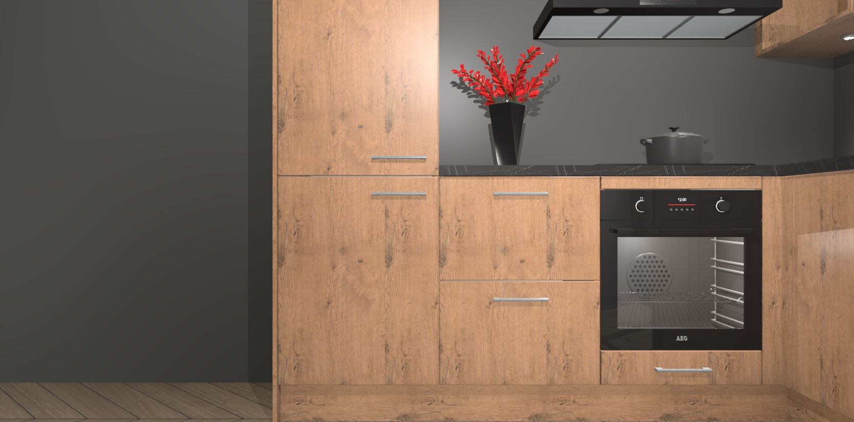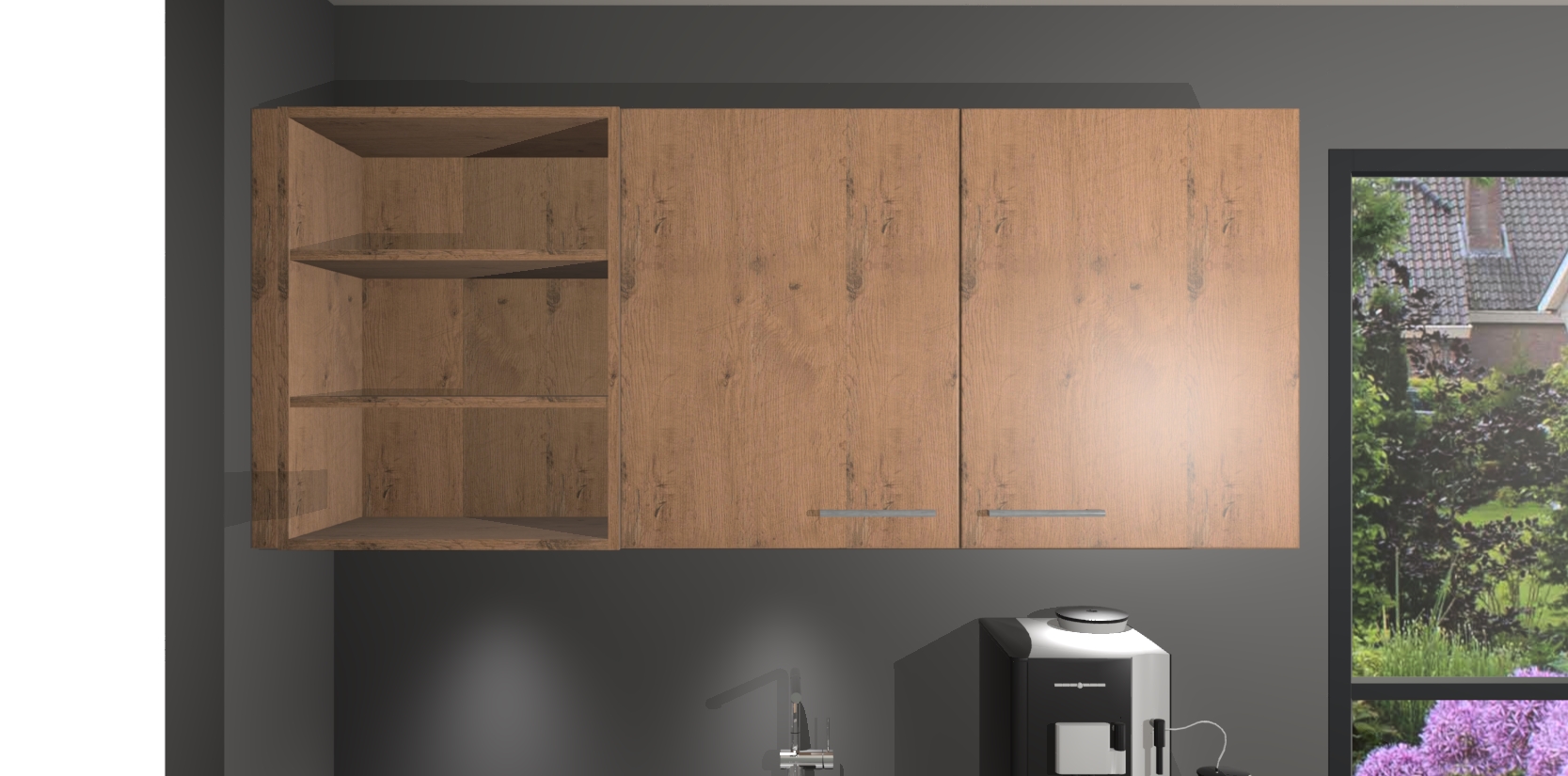 Wauw, dit is de Astoria Eiken keuken Pilsen! U kunt gerust zeggen dat u elegantie combineert met functionaliteit met deze keuken. Met een modern en chique ontwerp is de keuken precies wat u nodig heeft om uw ruimte te verfraaien. De binnenzijde van de kasten is in dezelfde donkere kleur als de buitenzijde voor een uniforme look, compleet met softclose-kasten die stil sluiten.