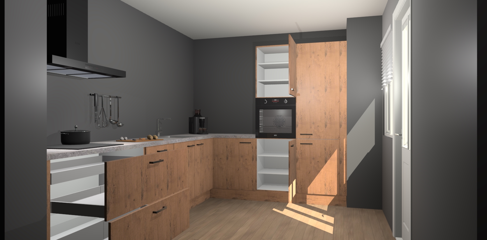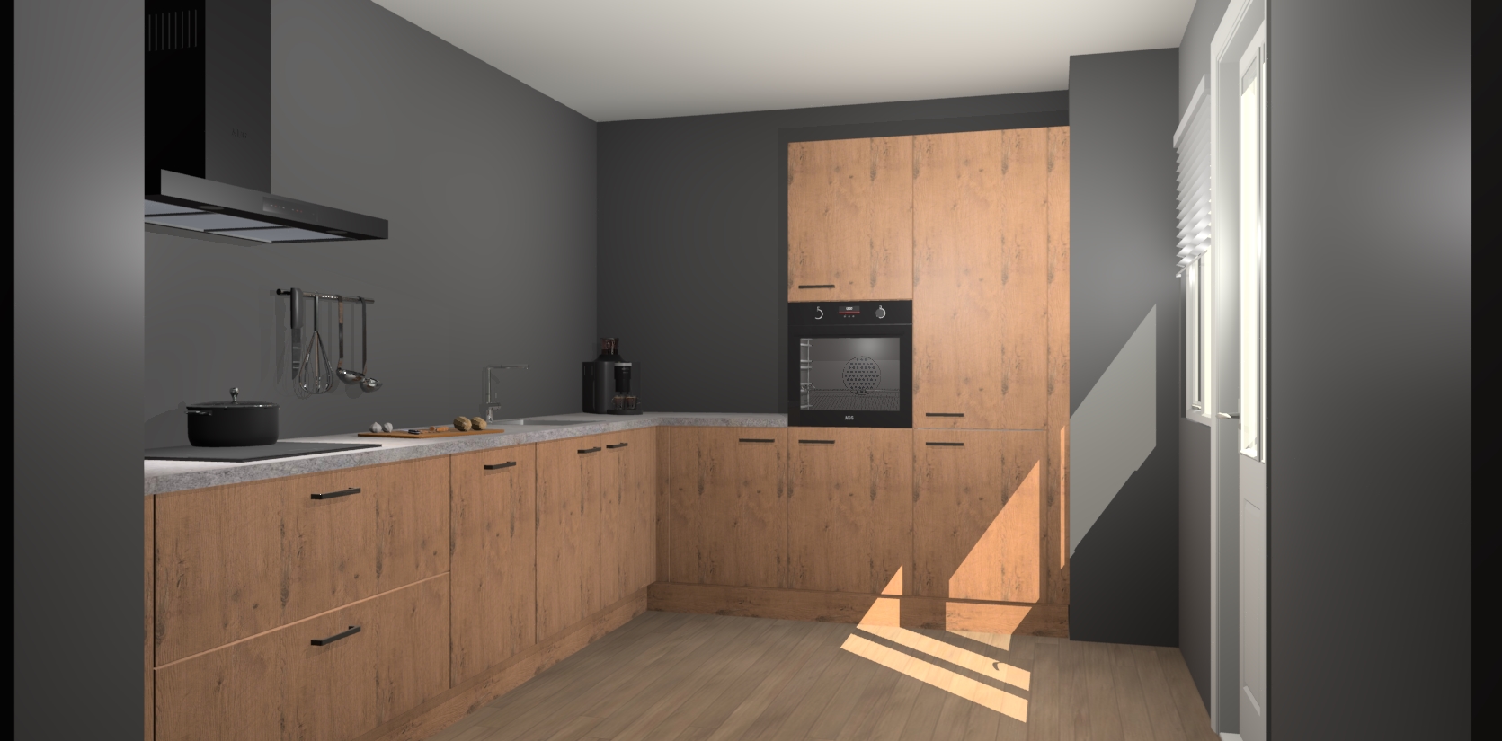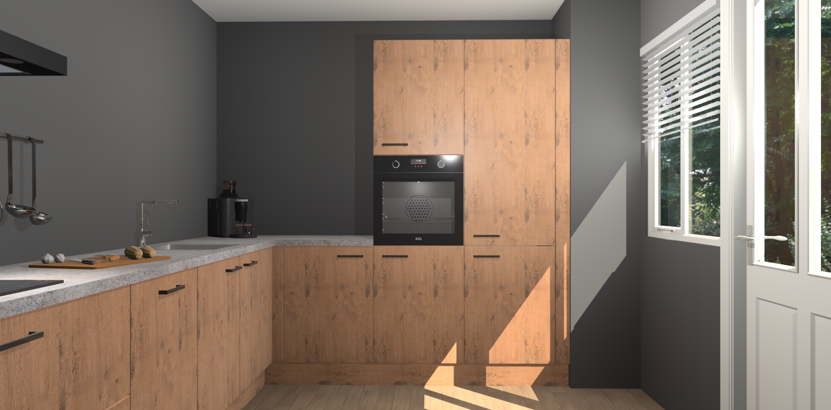 Welkom bij de Astoria Eiken keuken Portland. Deze prachtige keuken zal de komende jaren het middelpunt van de belangstelling in uw huis zijn. Uitgerust met vijf inbouwapparaten komt u nooit kookgereedschap tekort. Bovendien geeft de warme houtlook elke ruimte een uitnodigende en tijdloze uitstraling.