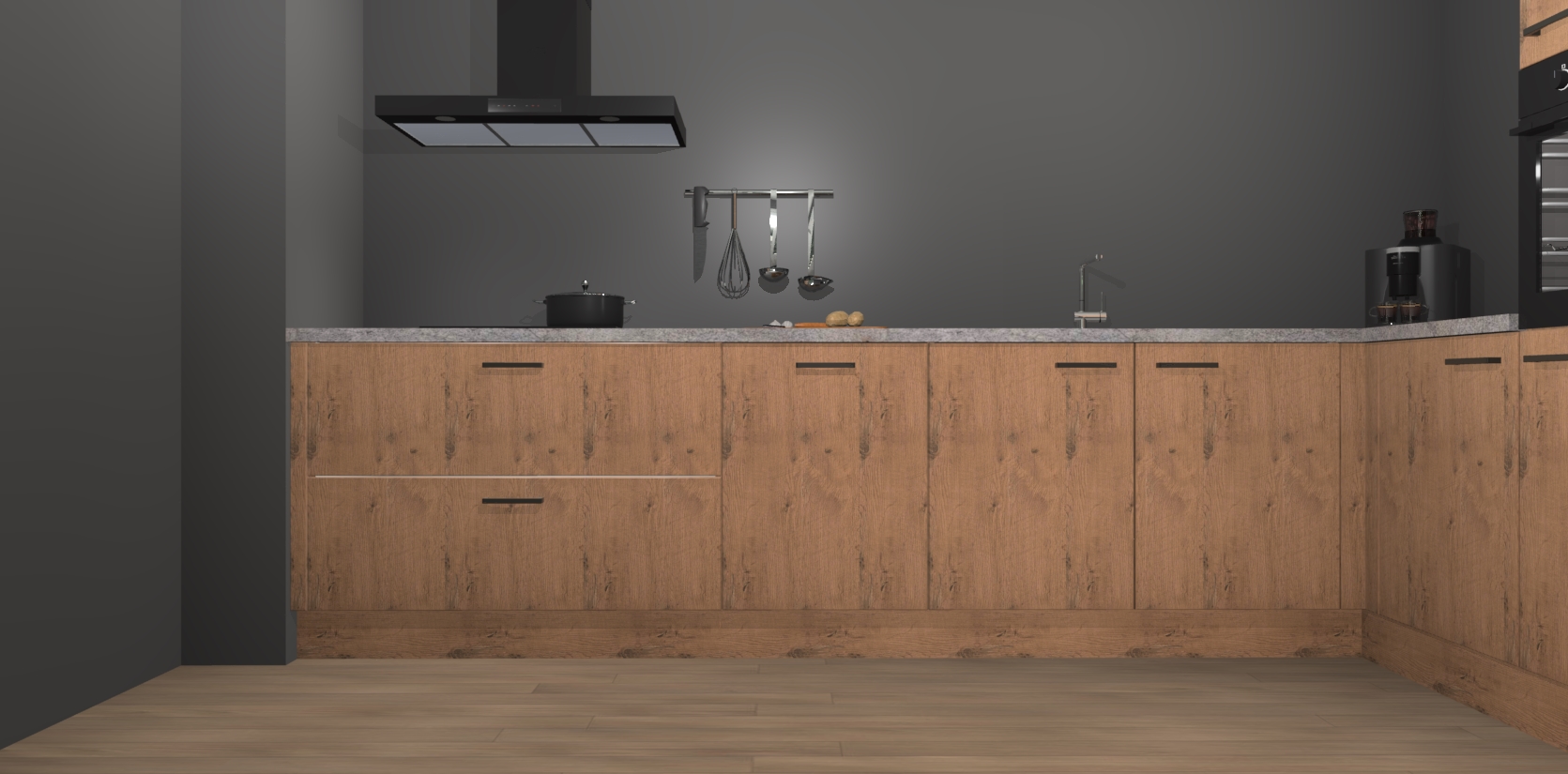 Inclusief plinten, stelpoten en werkblad