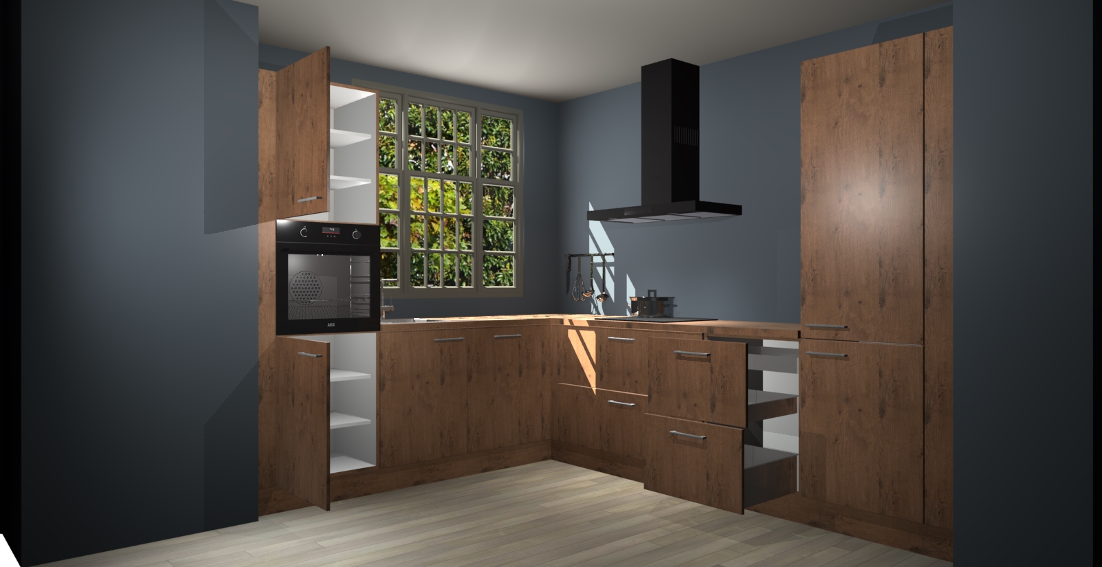 Met een modern, tijdloos design en ruime opslagruimte, zult u zich in no-time thuis voelen in uw nieuwe keuken. Uw leven wordt eenvoudiger met de soft-close deuren die voor het ultieme stille comfort zorgen - geen geluid dat u stoort terwijl u kookt. Ook is de keuken voorzien van 5 ingebouwde apparaten: een oven, inductie kookplaat, afzuigkap, vaatwasser en koelkast. Deze kunnen gemakkelijk na bestelling worden bijgewerkt naar AEG - waardoor uw luxe ervaring compleet is.