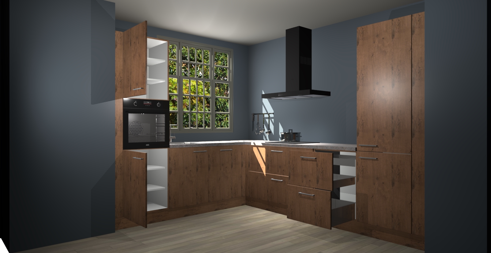 Met een modern, tijdloos design en ruime opslagruimte, zult u zich in no-time thuis voelen in uw nieuwe keuken. Uw leven wordt eenvoudiger met de soft-close deuren die voor het ultieme stille comfort zorgen - geen geluid dat u stoort terwijl u kookt. Ook is de keuken voorzien van 5 ingebouwde apparaten: een oven, inductie kookplaat, afzuigkap, vaatwasser en koelkast. Deze kunnen gemakkelijk na bestelling worden bijgewerkt naar AEG - waardoor uw luxe ervaring compleet is.