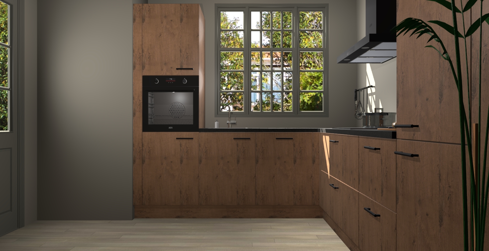 Met een modern, tijdloos design en ruime opslagruimte, zult u zich in no-time thuis voelen in uw nieuwe keuken. Uw leven wordt eenvoudiger met de soft-close deuren die voor het ultieme stille comfort zorgen - geen geluid dat u stoort terwijl u kookt. Ook is de keuken voorzien van 5 ingebouwde apparaten: een oven, inductie kookplaat, afzuigkap, vaatwasser en koelkast. Deze kunnen gemakkelijk na bestelling worden bijgewerkt naar AEG - waardoor uw luxe ervaring compleet is.