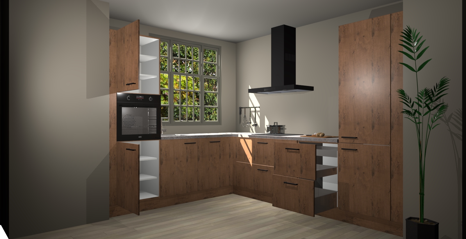 Met een modern, tijdloos design en ruime opslagruimte, zult u zich in no-time thuis voelen in uw nieuwe keuken. Uw leven wordt eenvoudiger met de soft-close deuren die voor het ultieme stille comfort zorgen - geen geluid dat u stoort terwijl u kookt. Ook is de keuken voorzien van 5 ingebouwde apparaten: een oven, inductie kookplaat, afzuigkap, vaatwasser en koelkast. Deze kunnen gemakkelijk na bestelling worden bijgewerkt naar AEG - waardoor uw luxe ervaring compleet is.