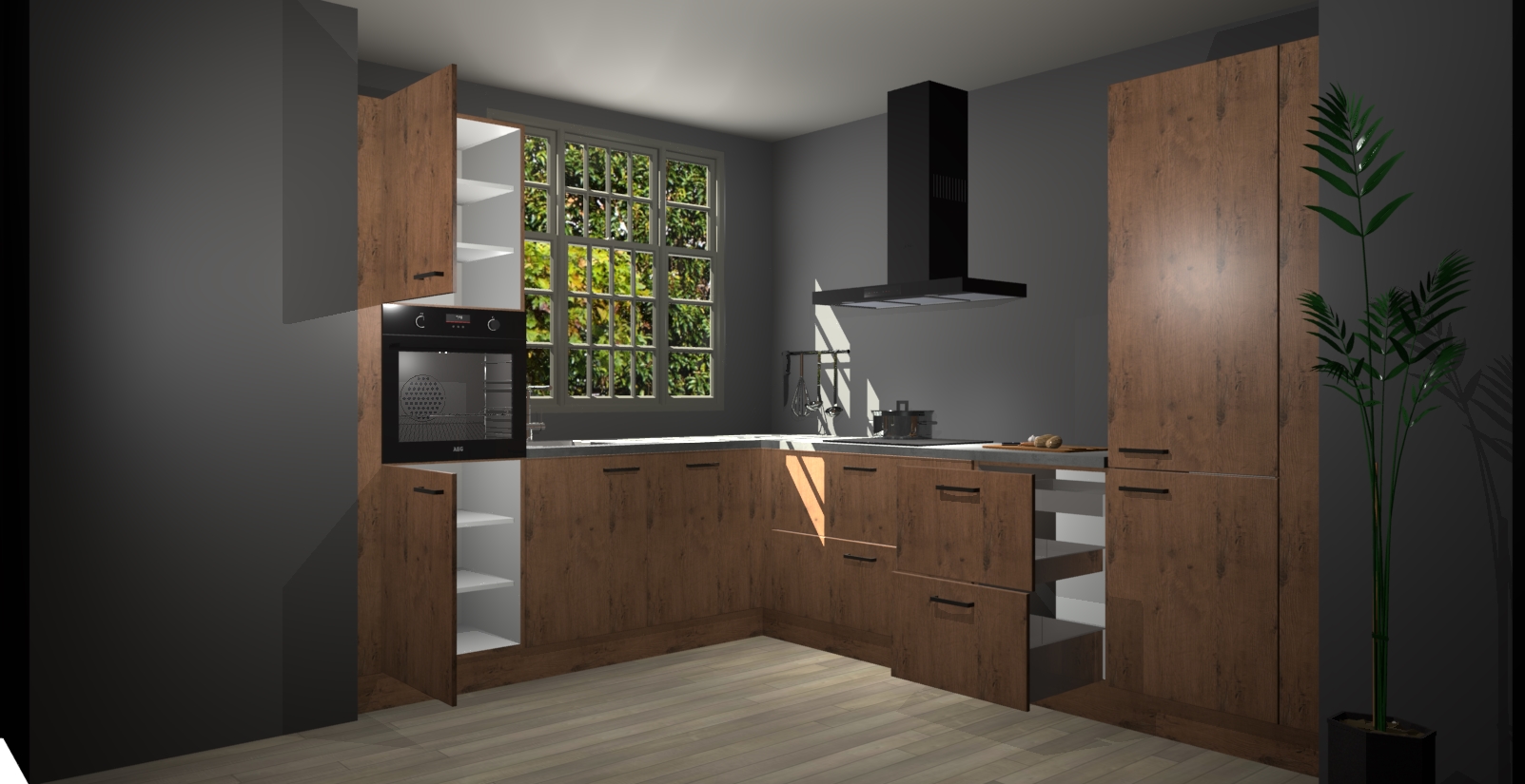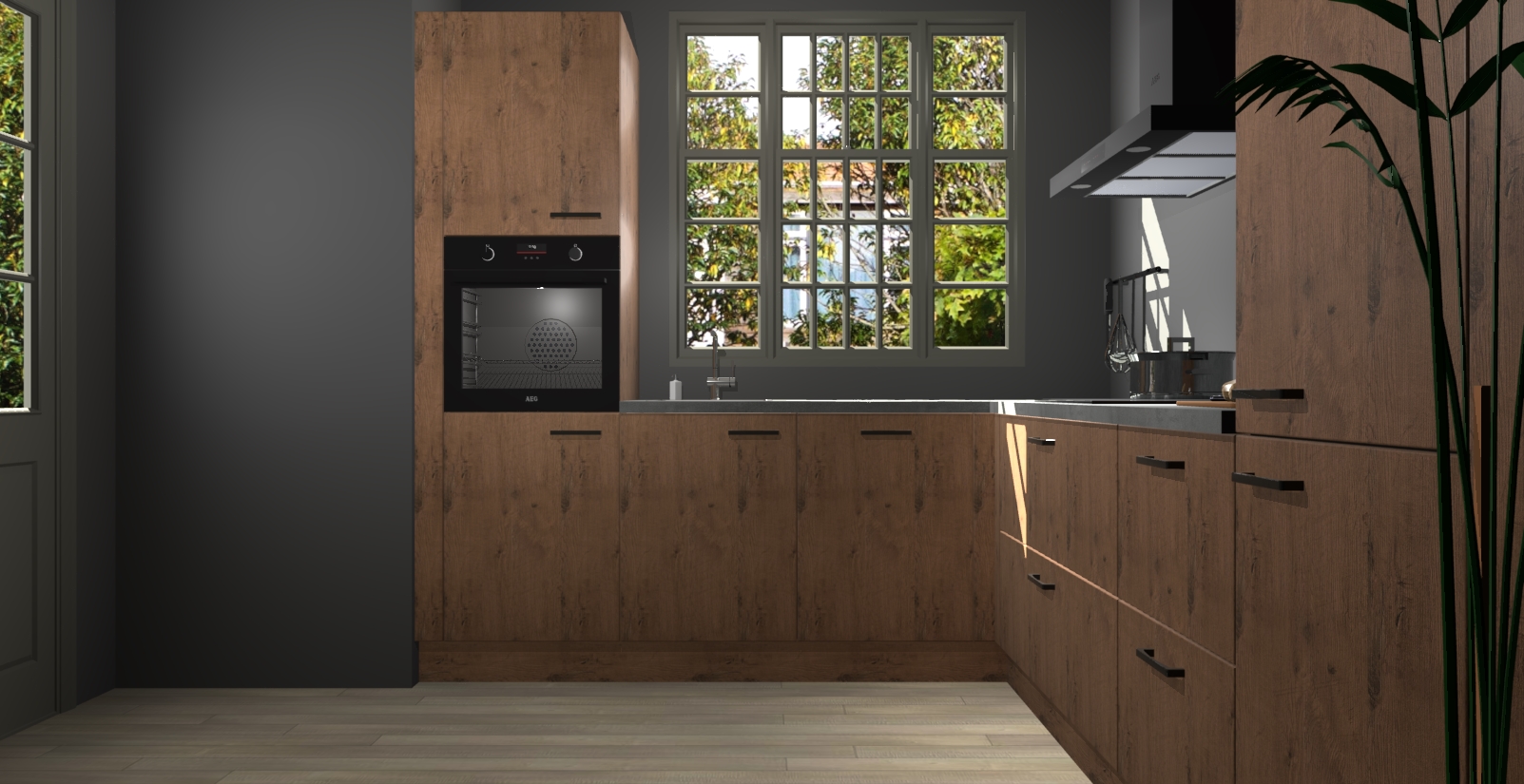 Met een modern, tijdloos design en ruime opslagruimte, zult u zich in no-time thuis voelen in uw nieuwe keuken. Uw leven wordt eenvoudiger met de soft-close deuren die voor het ultieme stille comfort zorgen - geen geluid dat u stoort terwijl u kookt. Ook is de keuken voorzien van 5 ingebouwde apparaten: een oven, inductie kookplaat, afzuigkap, vaatwasser en koelkast. Deze kunnen gemakkelijk na bestelling worden bijgewerkt naar AEG - waardoor uw luxe ervaring compleet is.