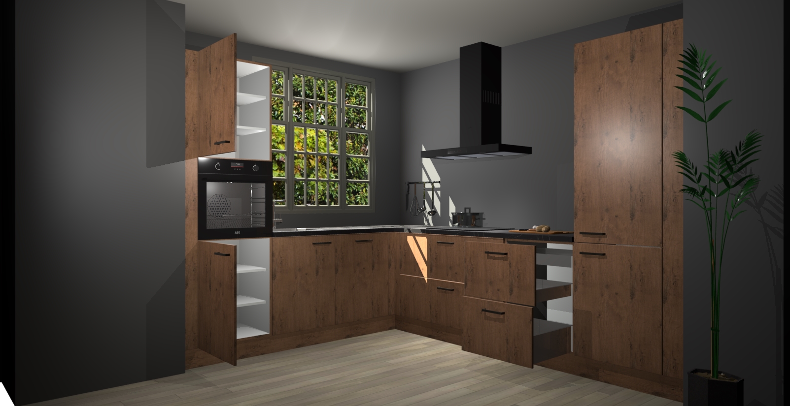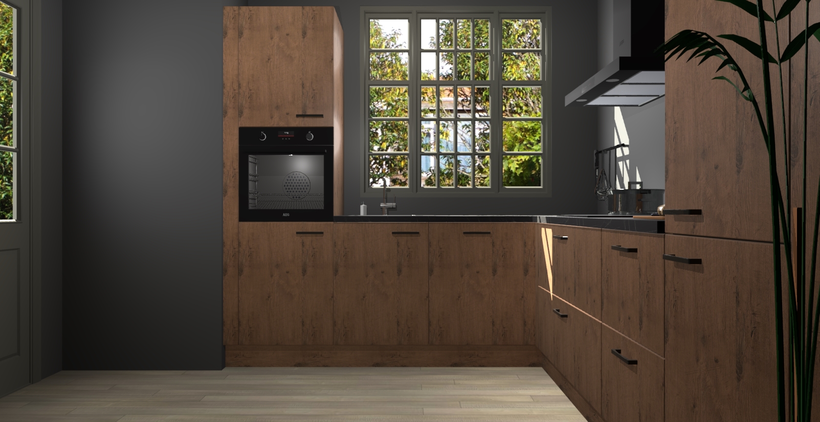 Met een modern, tijdloos design en ruime opslagruimte, zult u zich in no-time thuis voelen in uw nieuwe keuken. Uw leven wordt eenvoudiger met de soft-close deuren die voor het ultieme stille comfort zorgen - geen geluid dat u stoort terwijl u kookt. Ook is de keuken voorzien van 5 ingebouwde apparaten: een oven, inductie kookplaat, afzuigkap, vaatwasser en koelkast. Deze kunnen gemakkelijk na bestelling worden bijgewerkt naar AEG - waardoor uw luxe ervaring compleet is.