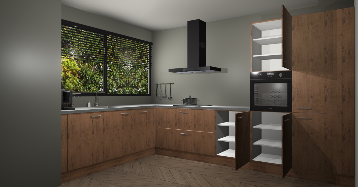 Met een modern, tijdloos design en ruime opslagruimte, zult u zich in no-time thuis voelen in uw nieuwe keuken. Uw leven wordt eenvoudiger met de soft-close deuren die voor het ultieme stille comfort zorgen - geen geluid dat u stoort terwijl u kookt. Ook is de keuken voorzien van 5 ingebouwde apparaten: een oven, inductie kookplaat, afzuigkap, vaatwasser en koelkast. Deze kunnen gemakkelijk na bestelling worden bijgewerkt naar AEG - waardoor uw luxe ervaring compleet is.