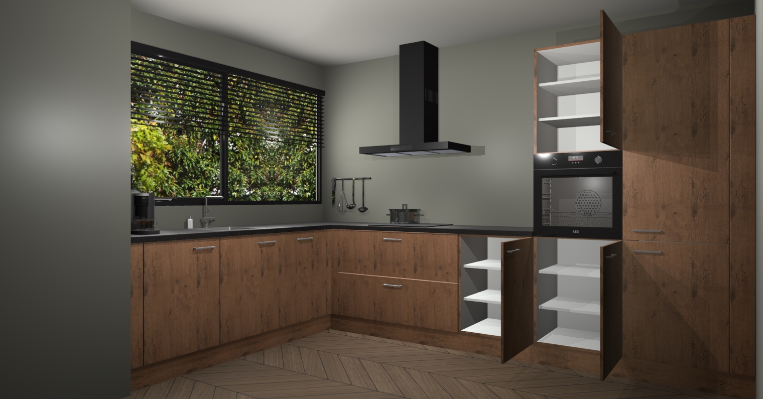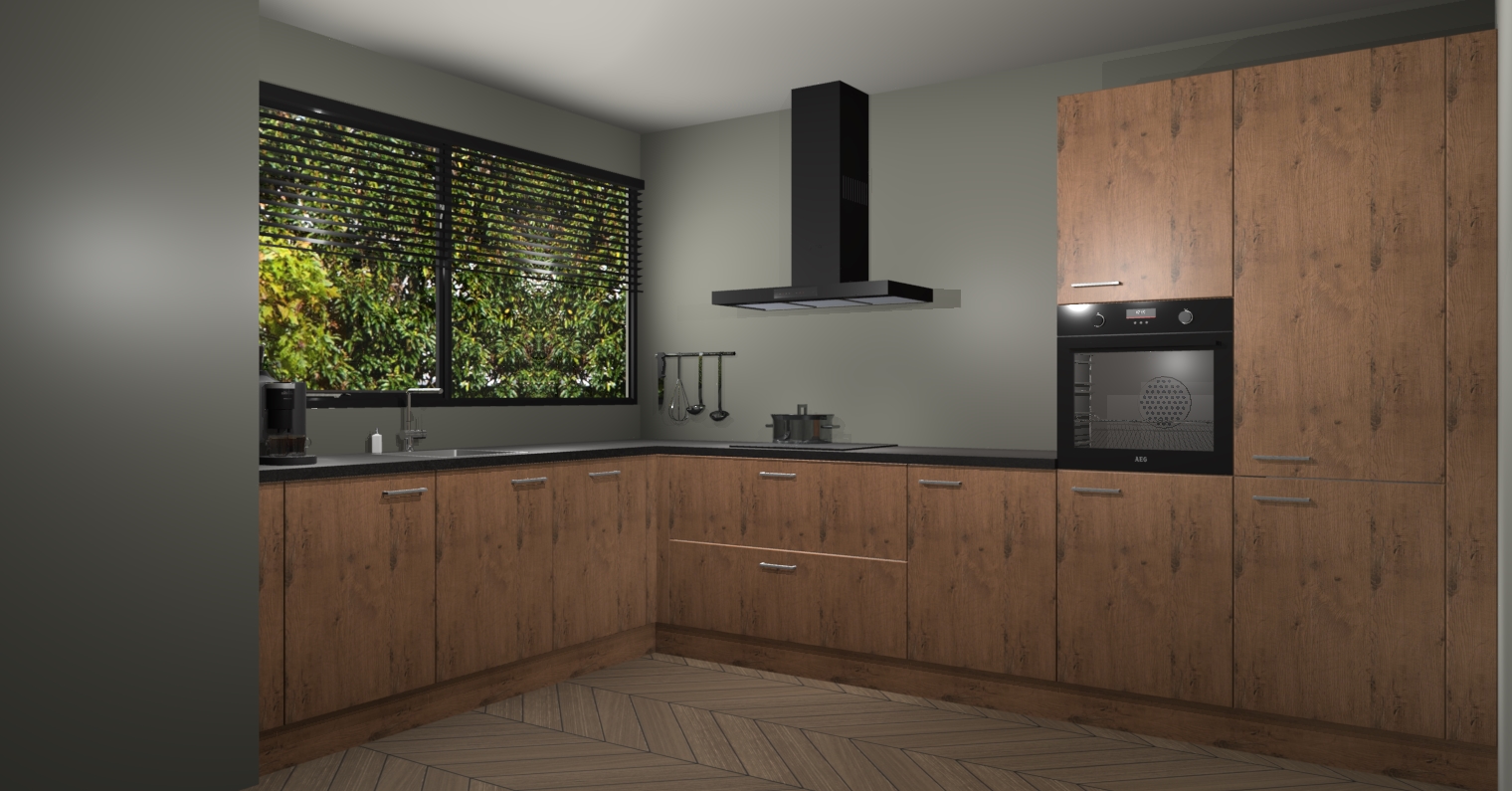 Met een modern, tijdloos design en ruime opslagruimte, zult u zich in no-time thuis voelen in uw nieuwe keuken. Uw leven wordt eenvoudiger met de soft-close deuren die voor het ultieme stille comfort zorgen - geen geluid dat u stoort terwijl u kookt. Ook is de keuken voorzien van 5 ingebouwde apparaten: een oven, inductie kookplaat, afzuigkap, vaatwasser en koelkast. Deze kunnen gemakkelijk na bestelling worden bijgewerkt naar AEG - waardoor uw luxe ervaring compleet is.
