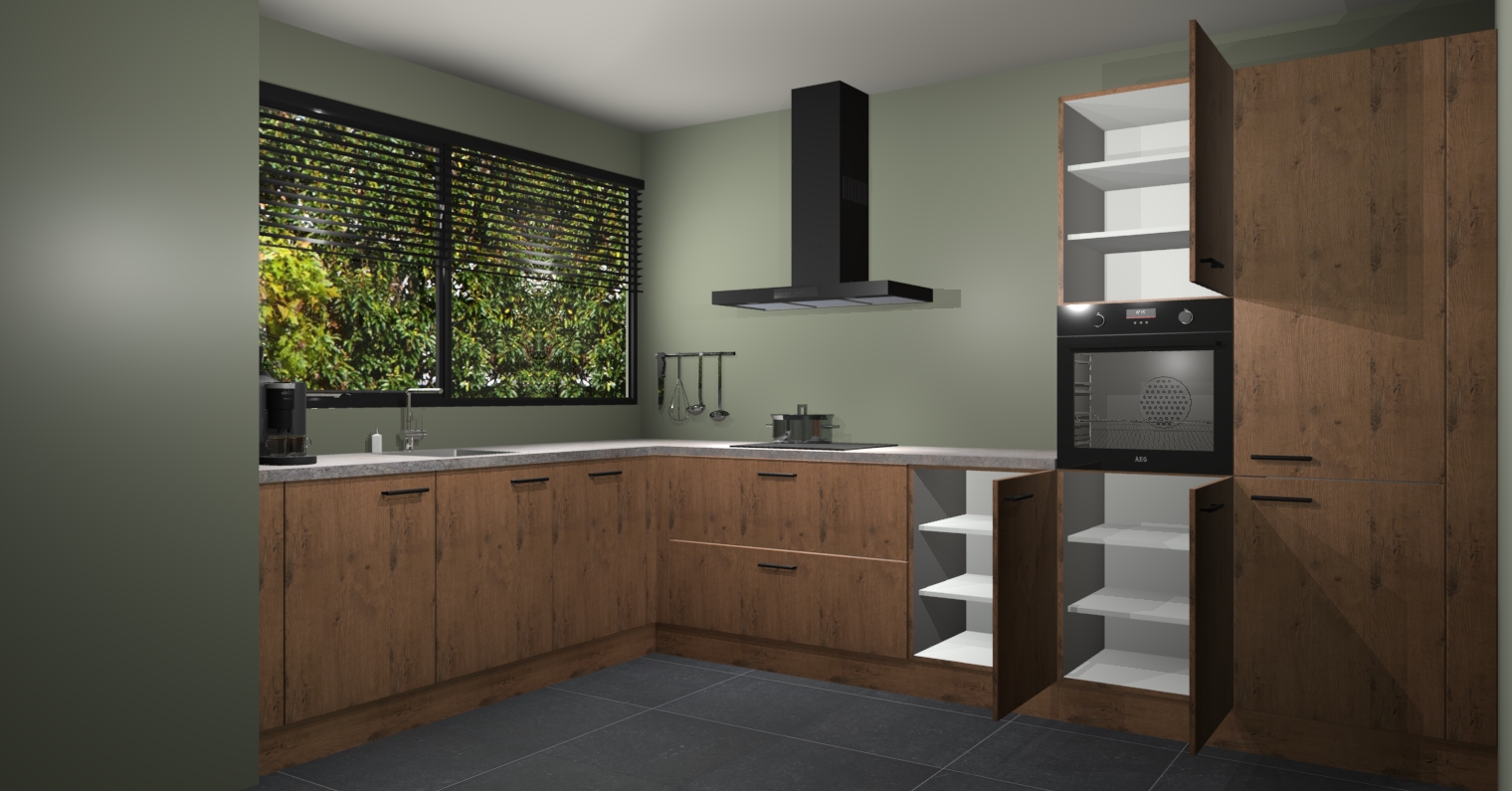 Met een modern, tijdloos design en ruime opslagruimte, zult u zich in no-time thuis voelen in uw nieuwe keuken. Uw leven wordt eenvoudiger met de soft-close deuren die voor het ultieme stille comfort zorgen - geen geluid dat u stoort terwijl u kookt. Ook is de keuken voorzien van 5 ingebouwde apparaten: een oven, inductie kookplaat, afzuigkap, vaatwasser en koelkast. Deze kunnen gemakkelijk na bestelling worden bijgewerkt naar AEG - waardoor uw luxe ervaring compleet is.