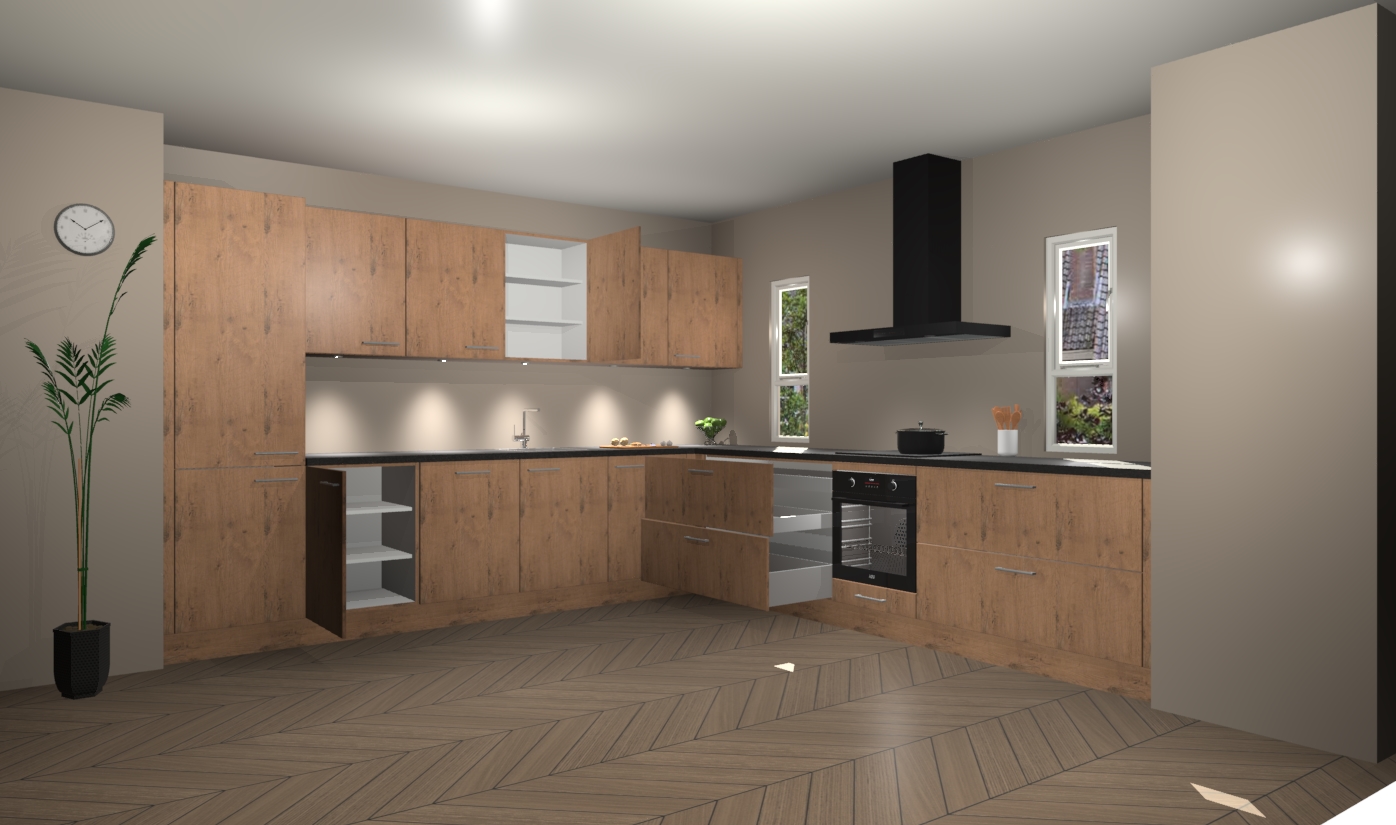 De astoria eiken keuken is een ideale hoekkeuken en heeft alle functies en apparatuur die u maar nodig kunt hebben. Bij de bestelling krijgt u een oven, inductiekookplaat, afzuigkap, vaatwasser en koelkast - deze kunnen desgewenst eenvoudig worden uitgebreid naar AEG na bestellen. Elke kast wordt ook voor gemonteerd geleverd met soft close deuren die jarenlang gebruik beloven. Stelt u zich voor dat u geen gedoe heeft met vervelende montage - vanaf het moment dat u uw bestelling plaats, duurt het slechts 7 weken voor het bij u thuis geleverd wordt.