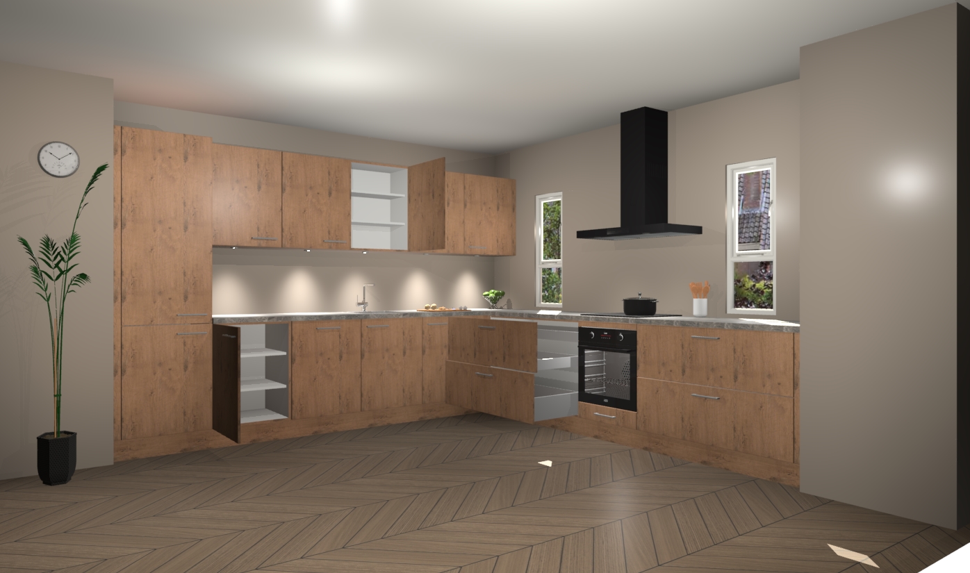 De astoria eiken keuken is een ideale hoekkeuken en heeft alle functies en apparatuur die u maar nodig kunt hebben. Bij de bestelling krijgt u een oven, inductiekookplaat, afzuigkap, vaatwasser en koelkast - deze kunnen desgewenst eenvoudig worden uitgebreid naar AEG na bestellen. Elke kast wordt ook voor gemonteerd geleverd met soft close deuren die jarenlang gebruik beloven. Stelt u zich voor dat u geen gedoe heeft met vervelende montage - vanaf het moment dat u uw bestelling plaats, duurt het slechts 7 weken voor het bij u thuis geleverd wordt.