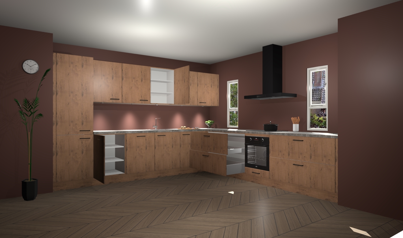 De astoria eiken keuken is een ideale hoekkeuken en heeft alle functies en apparatuur die u maar nodig kunt hebben. Bij de bestelling krijgt u een oven, inductiekookplaat, afzuigkap, vaatwasser en koelkast - deze kunnen desgewenst eenvoudig worden uitgebreid naar AEG na bestellen. Elke kast wordt ook voor gemonteerd geleverd met soft close deuren die jarenlang gebruik beloven. Stelt u zich voor dat u geen gedoe heeft met vervelende montage - vanaf het moment dat u uw bestelling plaats, duurt het slechts 7 weken voor het bij u thuis geleverd wordt.