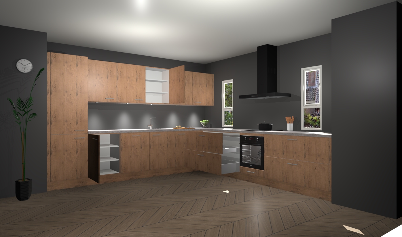 De astoria eiken keuken is een ideale hoekkeuken en heeft alle functies en apparatuur die u maar nodig kunt hebben. Bij de bestelling krijgt u een oven, inductiekookplaat, afzuigkap, vaatwasser en koelkast - deze kunnen desgewenst eenvoudig worden uitgebreid naar AEG na bestellen. Elke kast wordt ook voor gemonteerd geleverd met soft close deuren die jarenlang gebruik beloven. Stelt u zich voor dat u geen gedoe heeft met vervelende montage - vanaf het moment dat u uw bestelling plaats, duurt het slechts 7 weken voor het bij u thuis geleverd wordt.