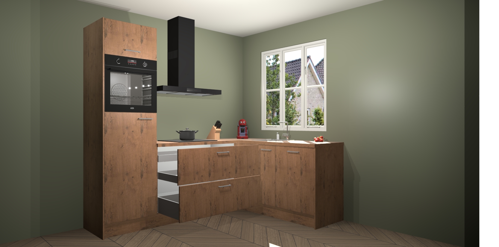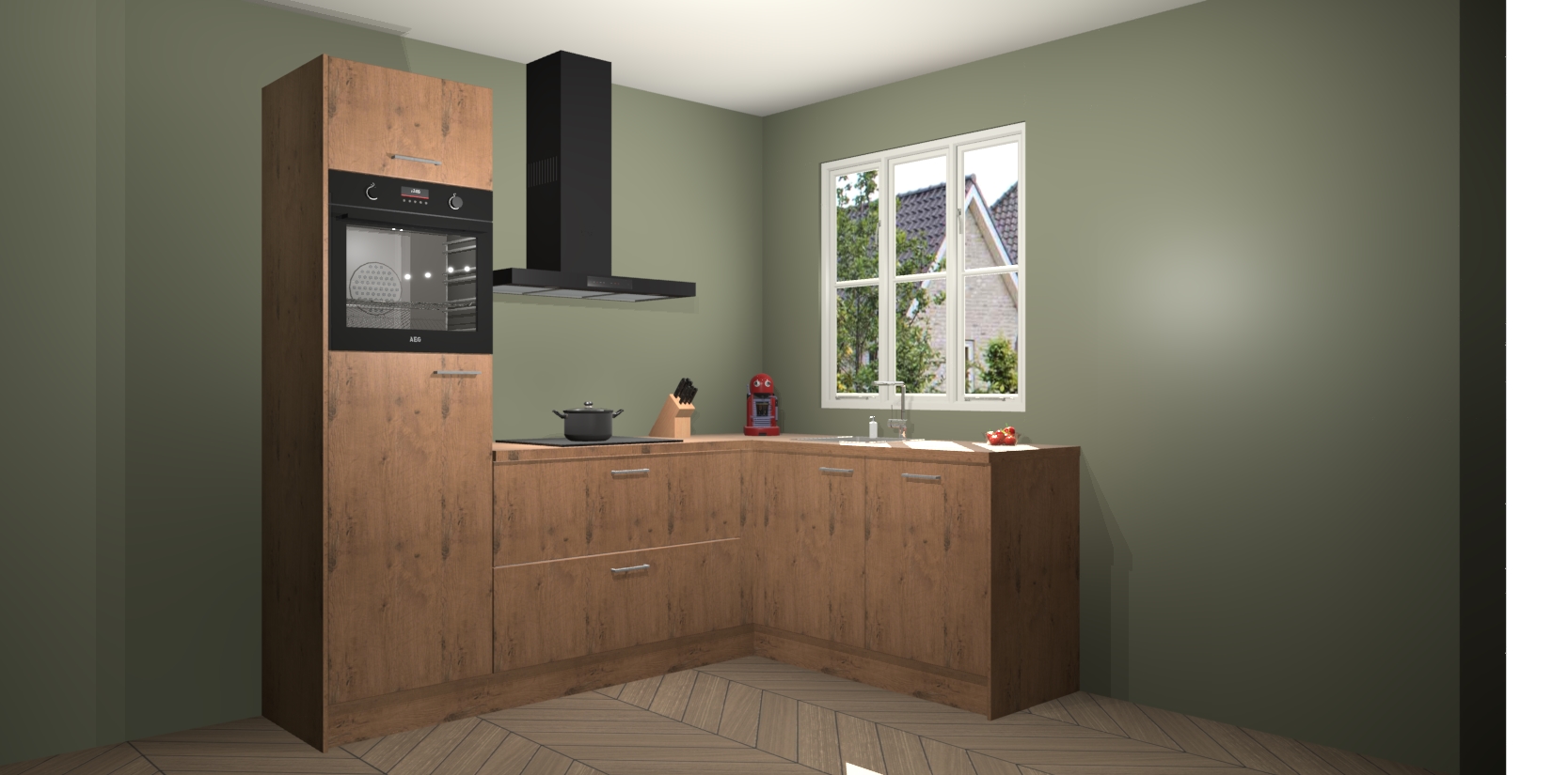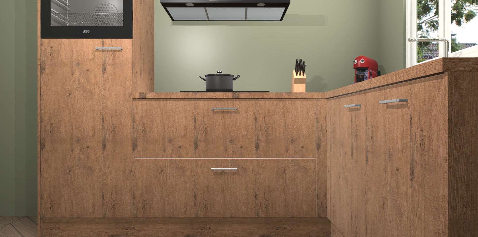 Dit model biedt u voldoende opbergruimte en vijf ingebouwde apparaten: een oven, inductiekookplaat, afzuigkap, vaatwasser en koelkast. Deze apparaten kunnen gemakkelijk worden geüpgrade naar AEG nadat u besteld heeft. De verschillende laden en kastjes bevatten softclose-deuren waardoor ze gezellig dichtvallen met een geruststellend helemaal geruisloos geluid. En dat is nog niet alles! We garanderen ook dat de prijs altijd laag blijft - dus haal nu uw Astoria Eiken keuken Victoria terwijl het kan.