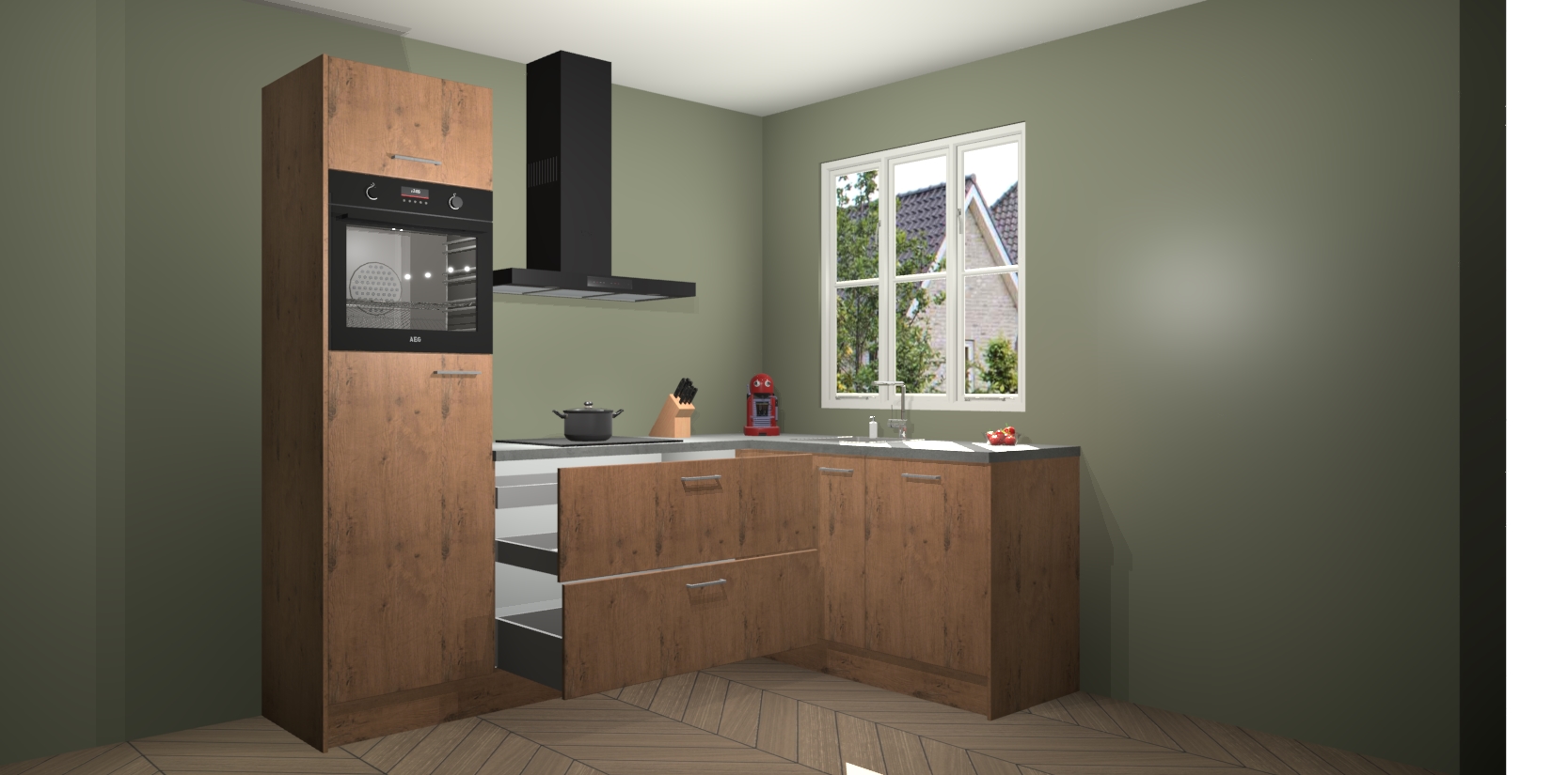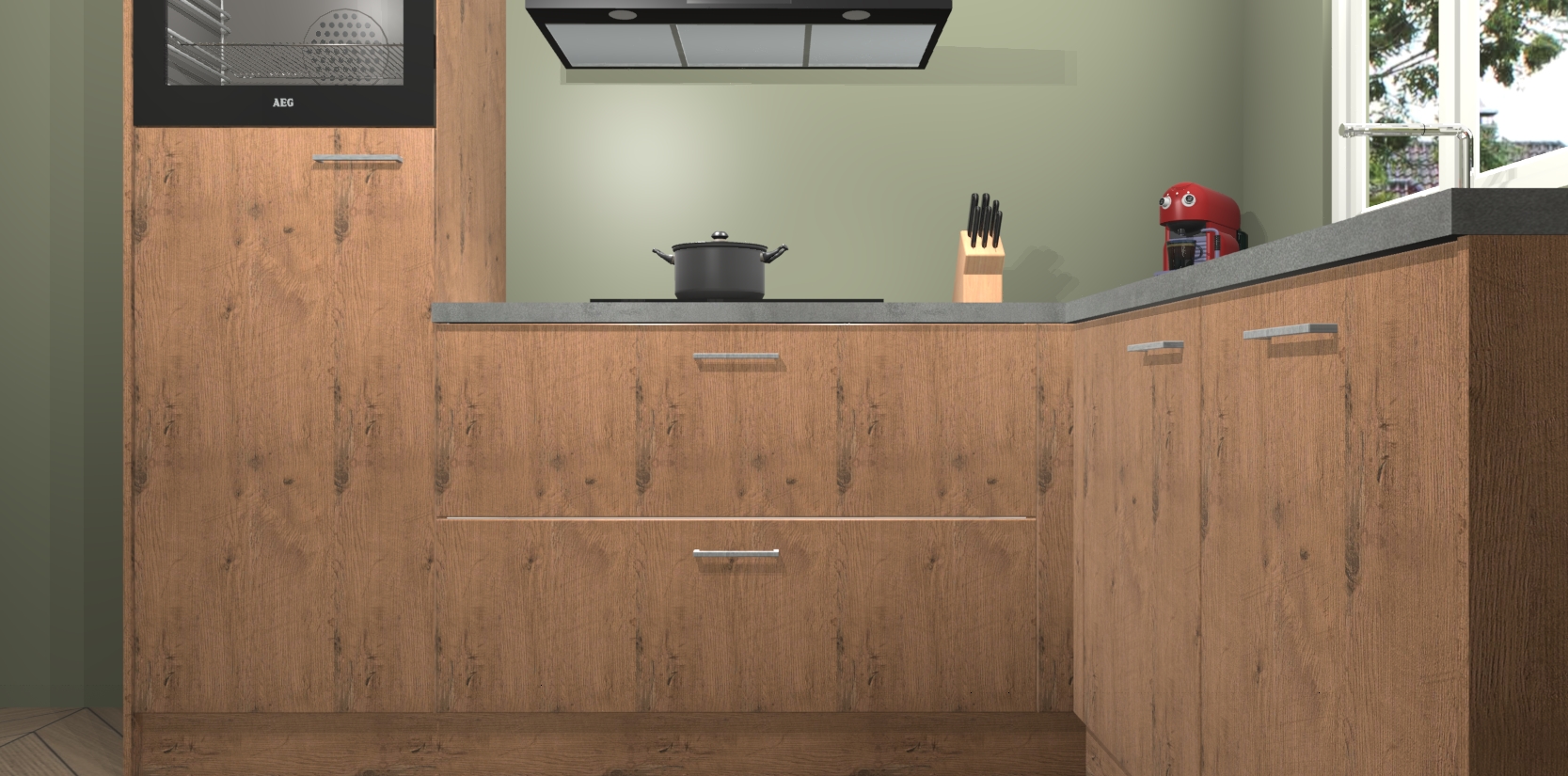 Dit model biedt u voldoende opbergruimte en vijf ingebouwde apparaten: een oven, inductiekookplaat, afzuigkap, vaatwasser en koelkast. Deze apparaten kunnen gemakkelijk worden geüpgrade naar AEG nadat u besteld heeft. De verschillende laden en kastjes bevatten softclose-deuren waardoor ze gezellig dichtvallen met een geruststellend helemaal geruisloos geluid. En dat is nog niet alles! We garanderen ook dat de prijs altijd laag blijft - dus haal nu uw Astoria Eiken keuken Victoria terwijl het kan.
