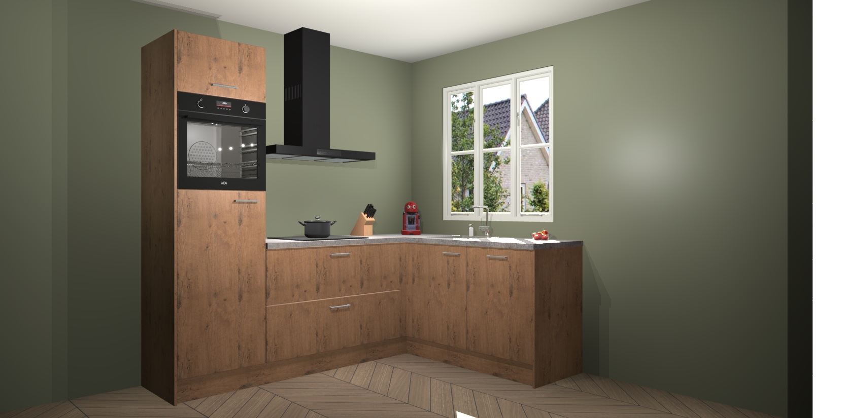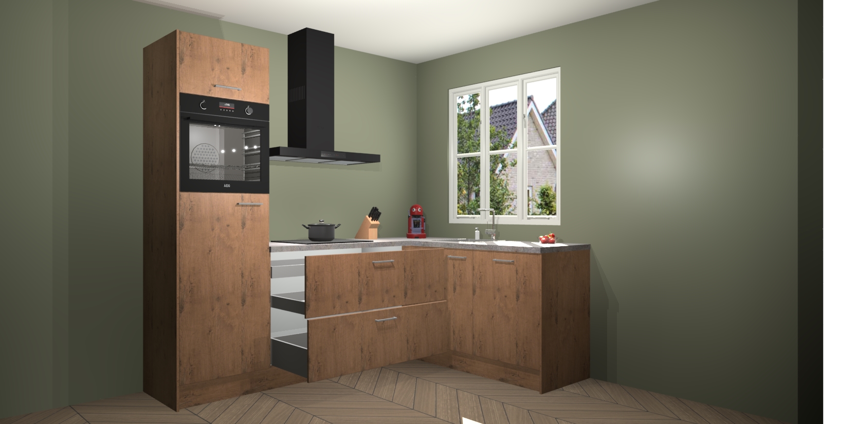 Dit model biedt u voldoende opbergruimte en vijf ingebouwde apparaten: een oven, inductiekookplaat, afzuigkap, vaatwasser en koelkast. Deze apparaten kunnen gemakkelijk worden geüpgrade naar AEG nadat u besteld heeft. De verschillende laden en kastjes bevatten softclose-deuren waardoor ze gezellig dichtvallen met een geruststellend helemaal geruisloos geluid. En dat is nog niet alles! We garanderen ook dat de prijs altijd laag blijft - dus haal nu uw Astoria Eiken keuken Victoria terwijl het kan.