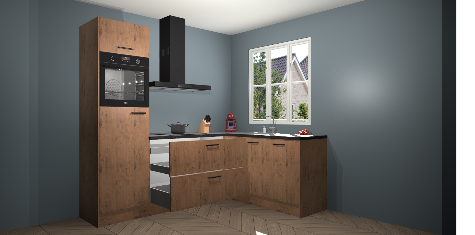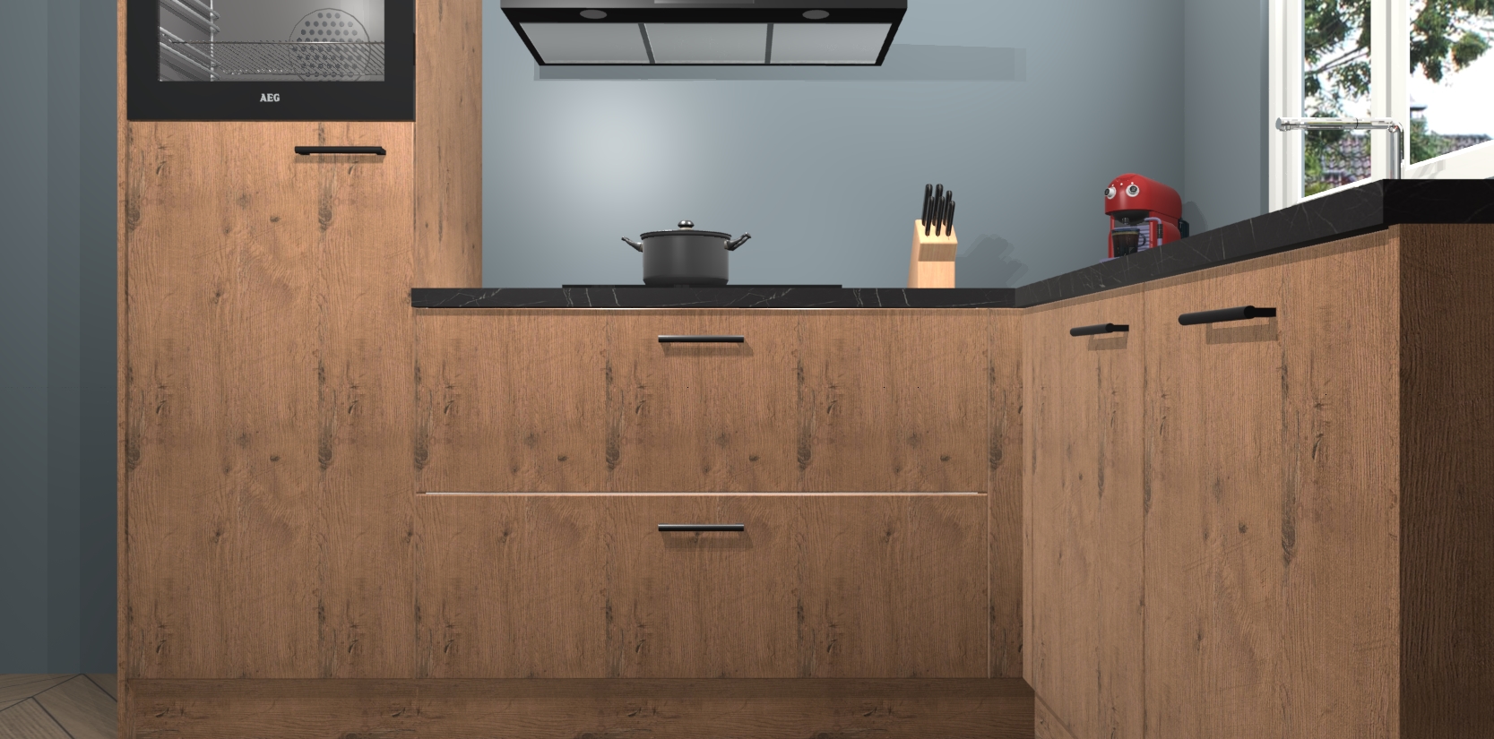 Dit model biedt u voldoende opbergruimte en vijf ingebouwde apparaten: een oven, inductiekookplaat, afzuigkap, vaatwasser en koelkast. Deze apparaten kunnen gemakkelijk worden geüpgrade naar AEG nadat u besteld heeft. De verschillende laden en kastjes bevatten softclose-deuren waardoor ze gezellig dichtvallen met een geruststellend helemaal geruisloos geluid. En dat is nog niet alles! We garanderen ook dat de prijs altijd laag blijft - dus haal nu uw Astoria Eiken keuken Victoria terwijl het kan.