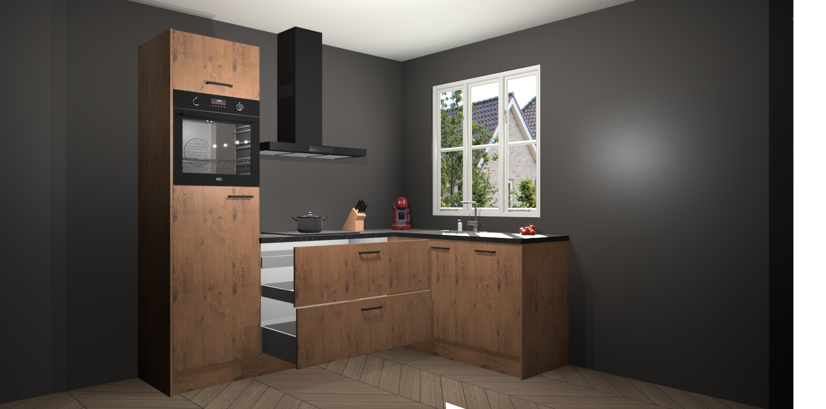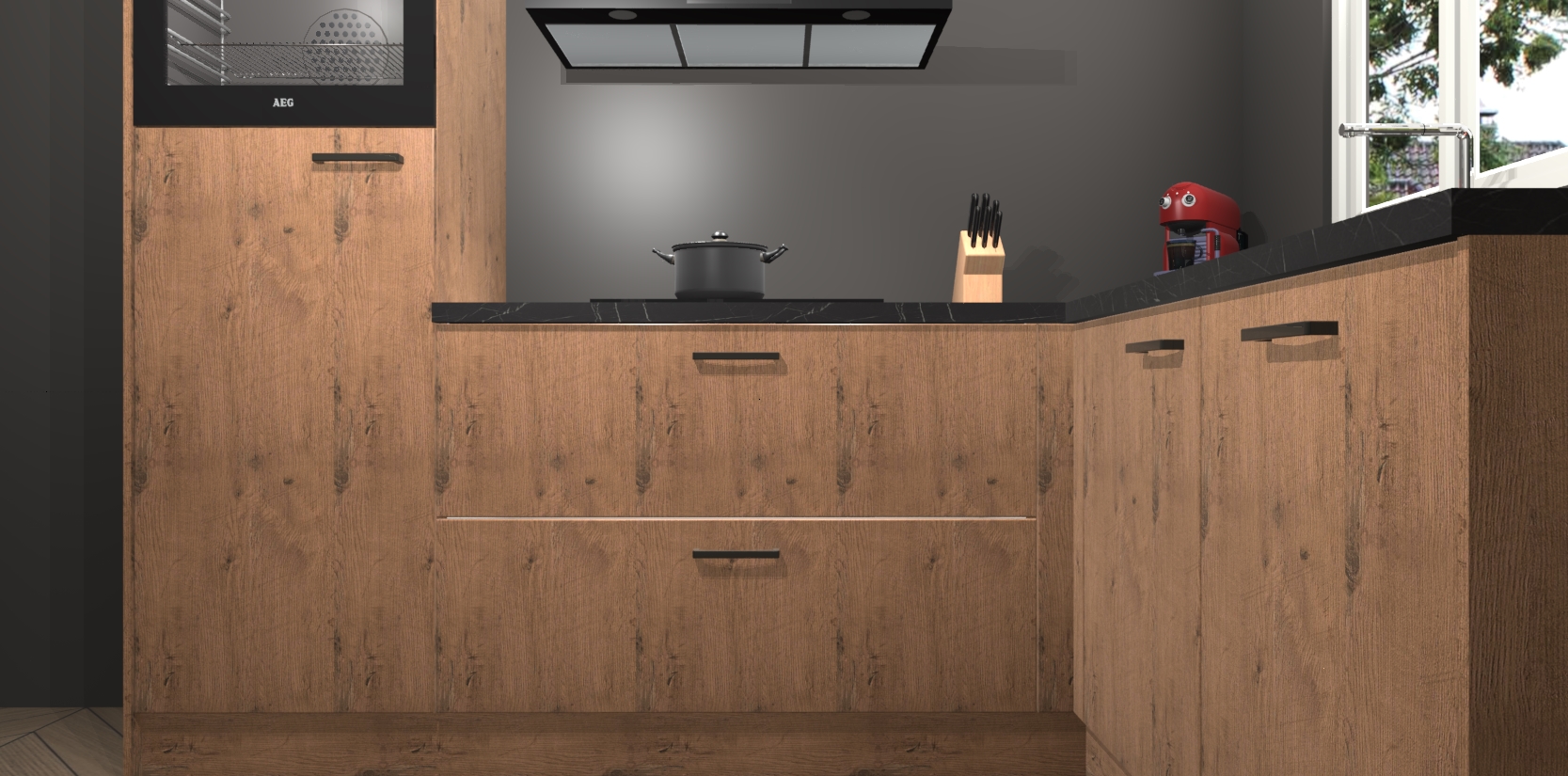 Dit model biedt u voldoende opbergruimte en vijf ingebouwde apparaten: een oven, inductiekookplaat, afzuigkap, vaatwasser en koelkast. Deze apparaten kunnen gemakkelijk worden geüpgrade naar AEG nadat u besteld heeft. De verschillende laden en kastjes bevatten softclose-deuren waardoor ze gezellig dichtvallen met een geruststellend helemaal geruisloos geluid. En dat is nog niet alles! We garanderen ook dat de prijs altijd laag blijft - dus haal nu uw Astoria Eiken keuken Victoria terwijl het kan.