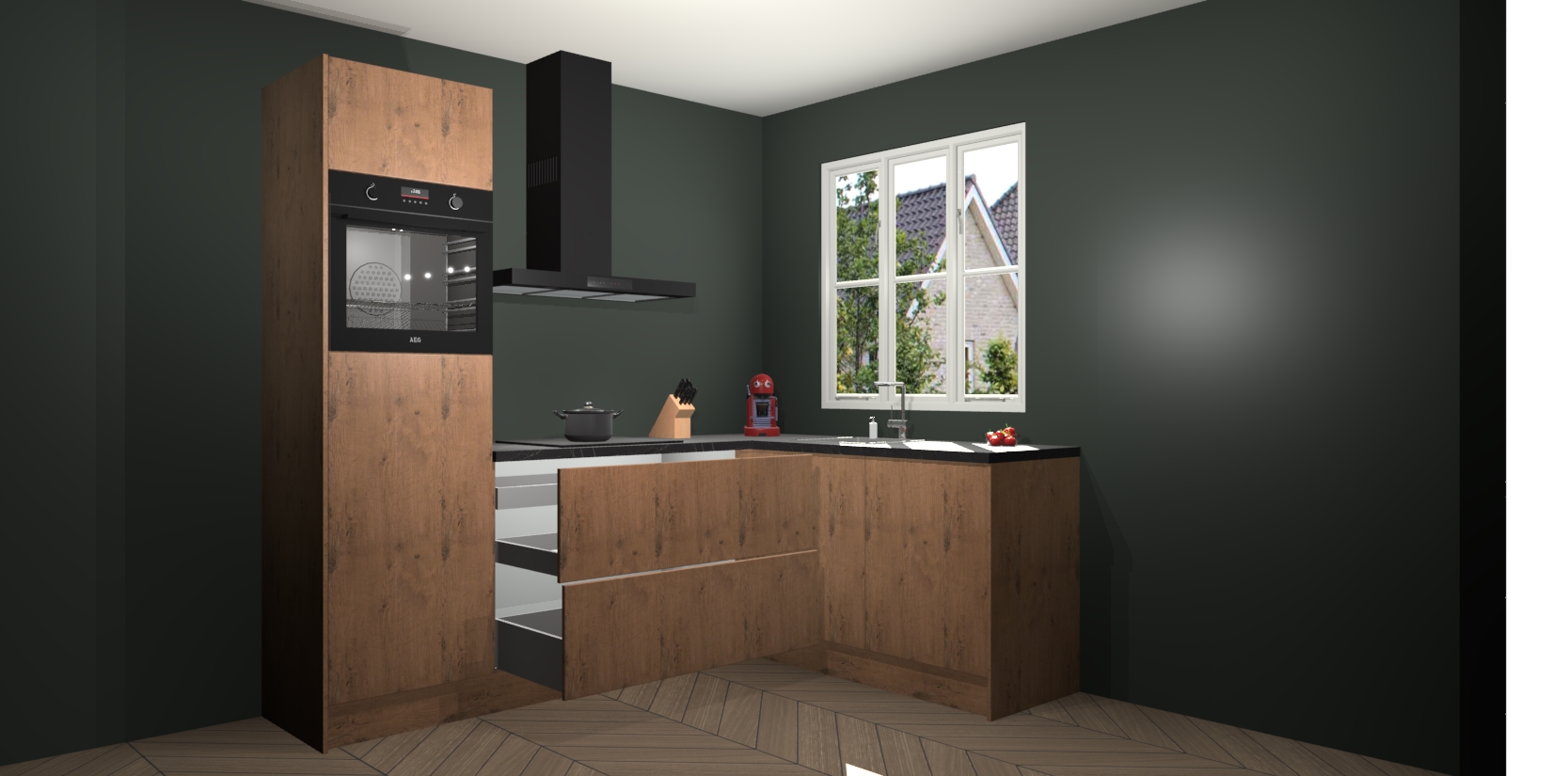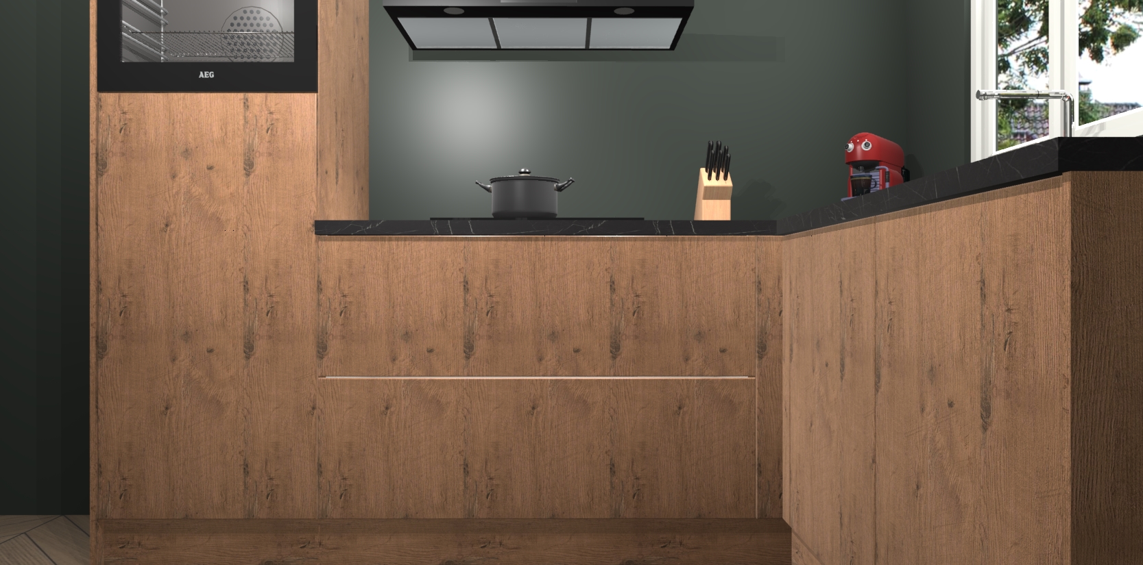 Dit model biedt u voldoende opbergruimte en vijf ingebouwde apparaten: een oven, inductiekookplaat, afzuigkap, vaatwasser en koelkast. Deze apparaten kunnen gemakkelijk worden geüpgrade naar AEG nadat u besteld heeft. De verschillende laden en kastjes bevatten softclose-deuren waardoor ze gezellig dichtvallen met een geruststellend helemaal geruisloos geluid. En dat is nog niet alles! We garanderen ook dat de prijs altijd laag blijft - dus haal nu uw Astoria Eiken keuken Victoria terwijl het kan.