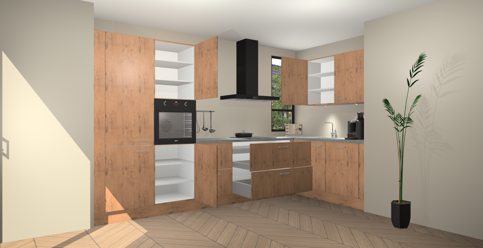 Welkom in uw nieuwe moderne keuken! Laat ons u voorstellen aan de Astoria Eiken keuken Vlaanderen . Deze prachtige hoekkeuken straalt exclusiviteit en luxe uit als geen ander. Het strakke design, de tijdloze kleuren en het model maken van deze keuken een moderne klassieker. En met voldoende opbergruimte heeft deze keuken echt voor ieder wat wils.