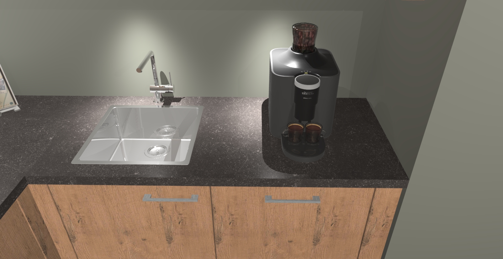 - De spoelbak is nog niet in gevreesd. Dit dient tijdens het werk gedaan te worden
