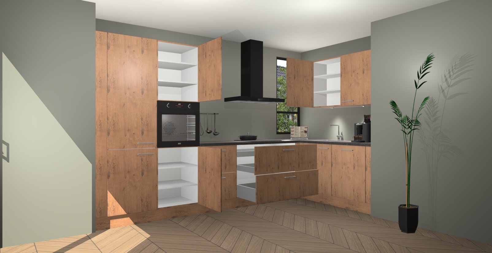 Welkom in uw nieuwe moderne keuken! Laat ons u voorstellen aan de Astoria Eiken keuken Vlaanderen . Deze prachtige hoekkeuken straalt exclusiviteit en luxe uit als geen ander. Het strakke design, de tijdloze kleuren en het model maken van deze keuken een moderne klassieker. En met voldoende opbergruimte heeft deze keuken echt voor ieder wat wils.