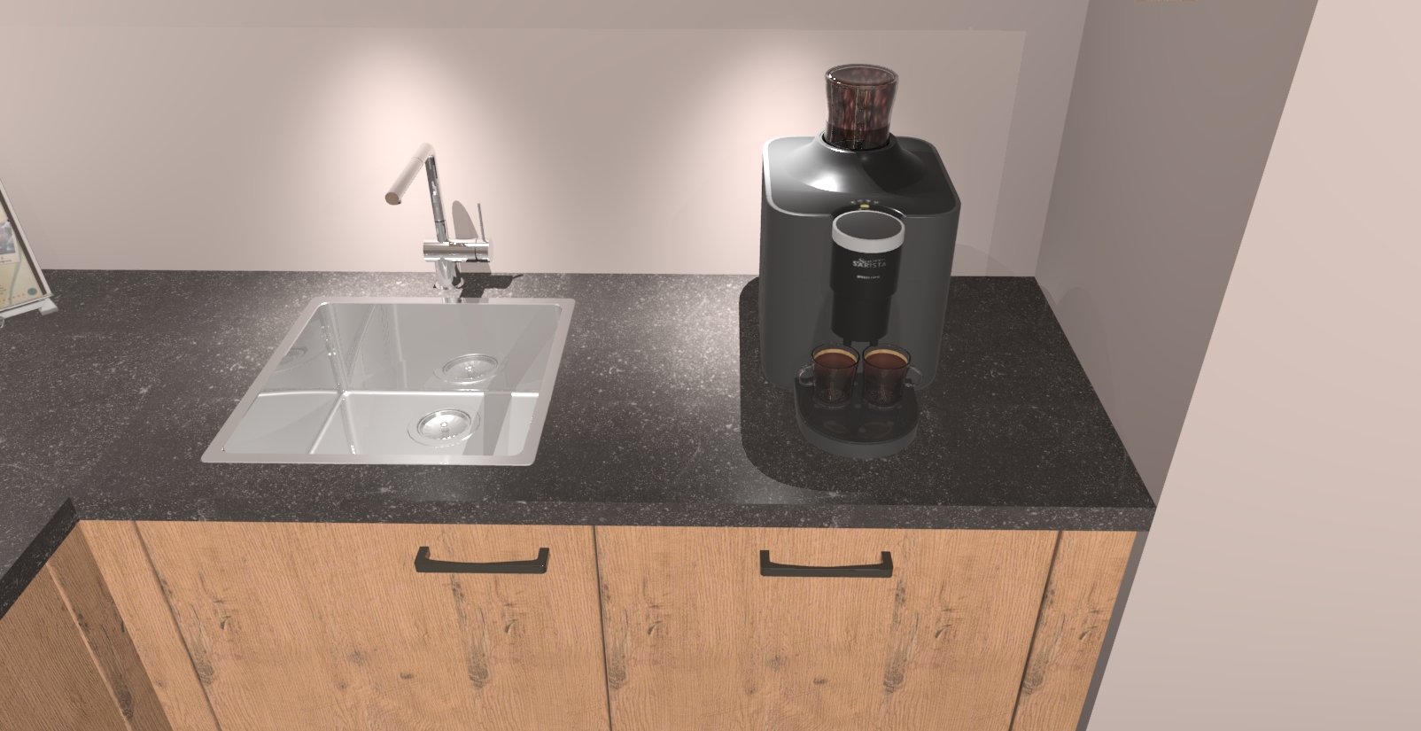 • De spoelbak is nog niet in gevreesd. Dit dient tijdens het werk gedaan te worden